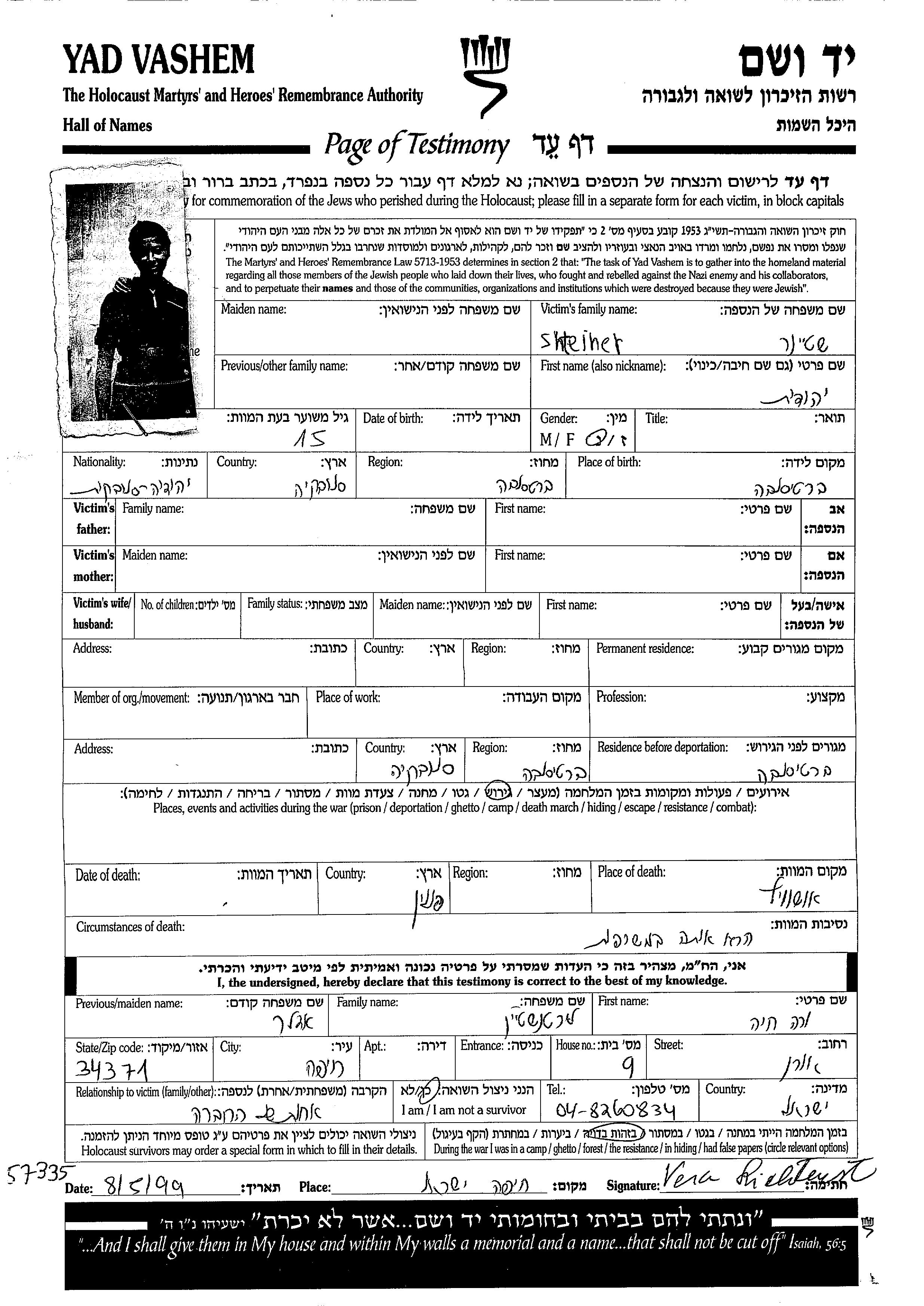 Yehudit wurde in der Schoah ermordet. Todesort: Auschwitz, Polen.