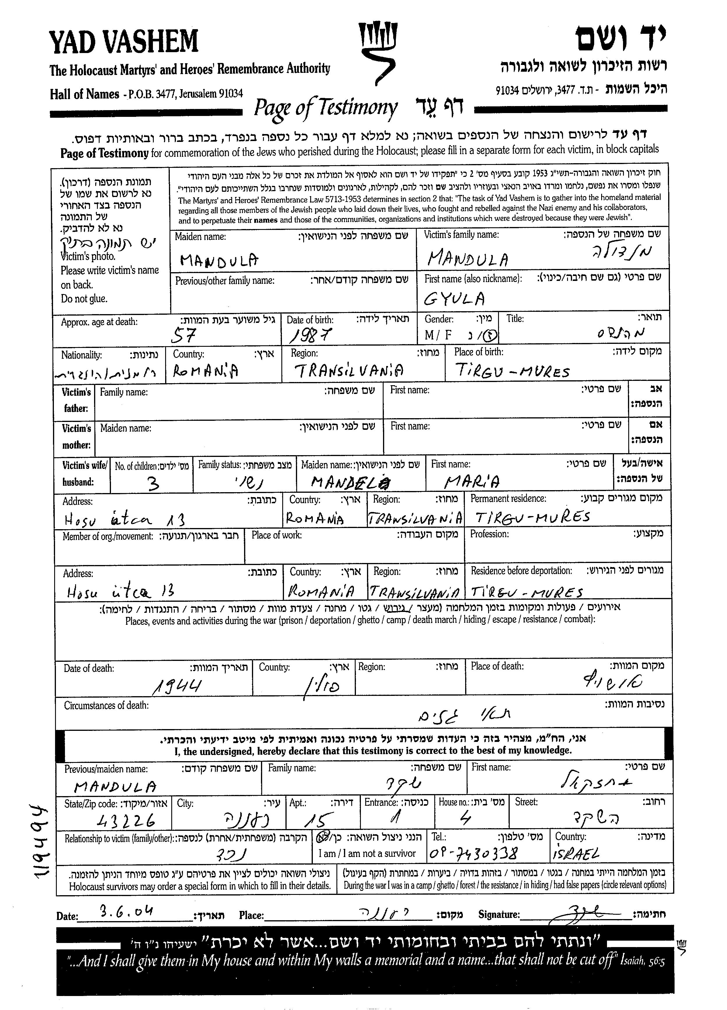 Gyula Mandula wurde im Jahr 1887 in Targu Mures, Rumänien geboren. Vor dem Zweiten Weltkrieg lebte er in Targu Mures, Rumänien.
