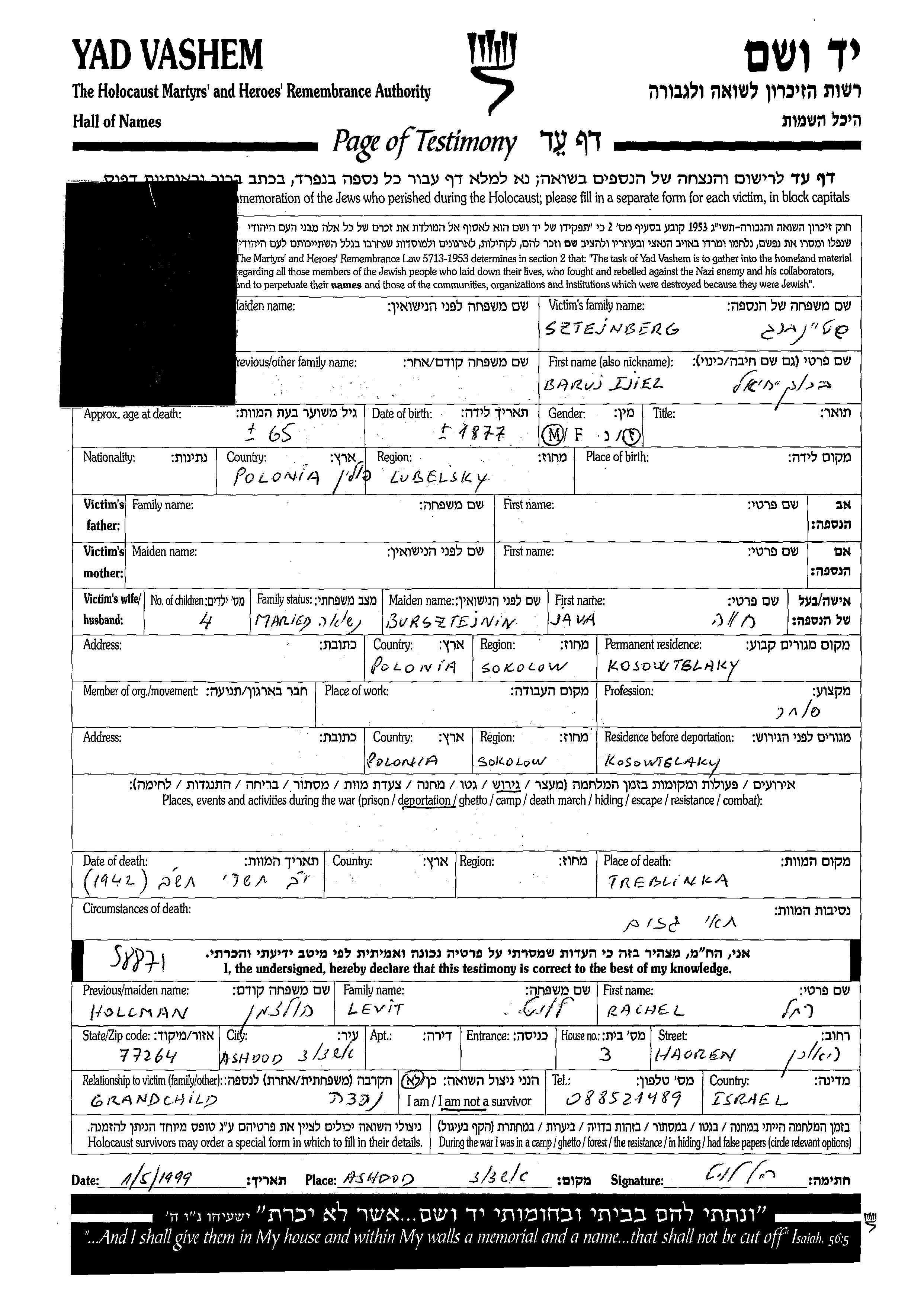Stadt/Ortschaft oder Lager/Ghetto oder Bezirk/Region oder Land