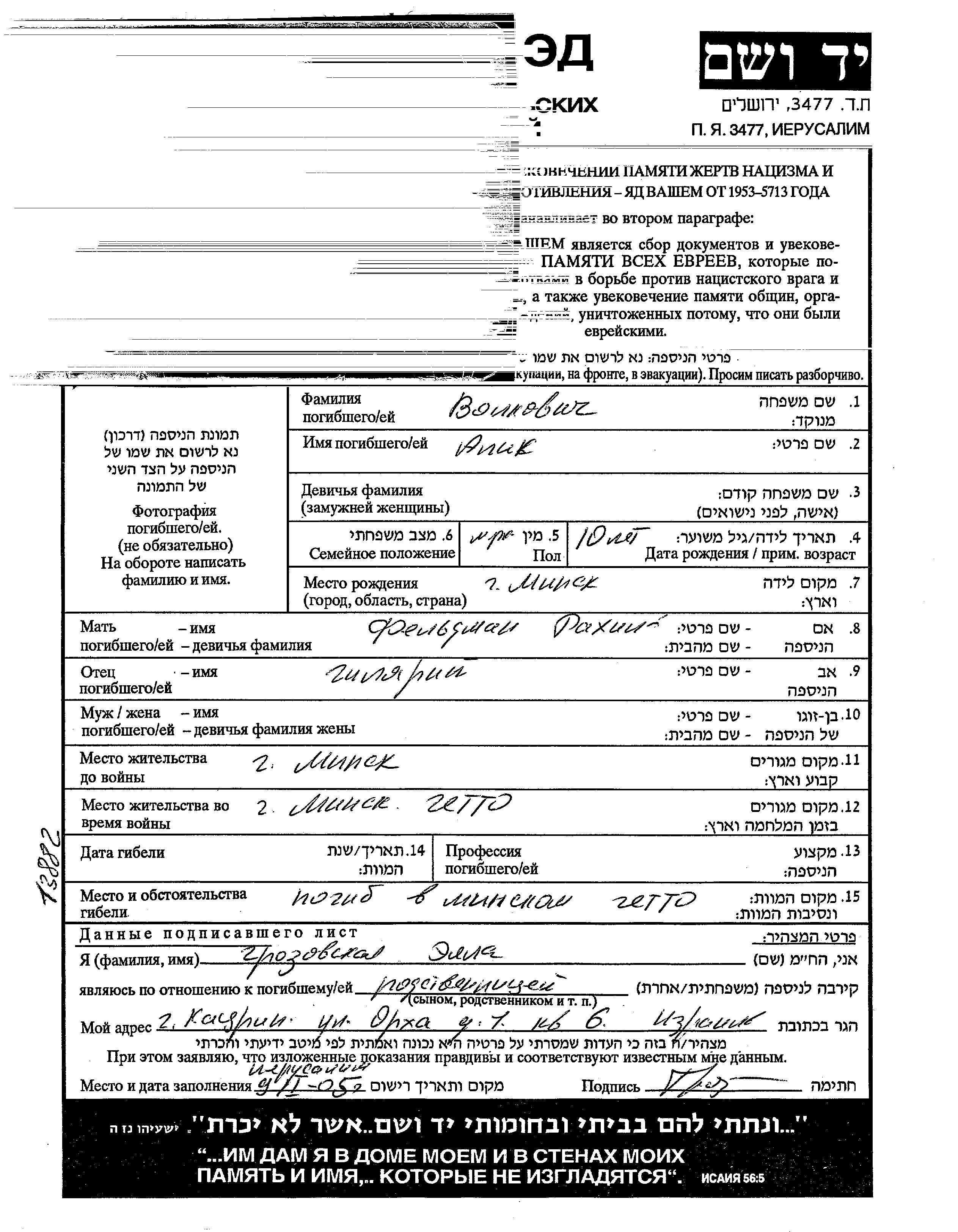 Alik wurde in der Schoah ermordet. Todesort: Minsk, Weißrussland (UdSSR).