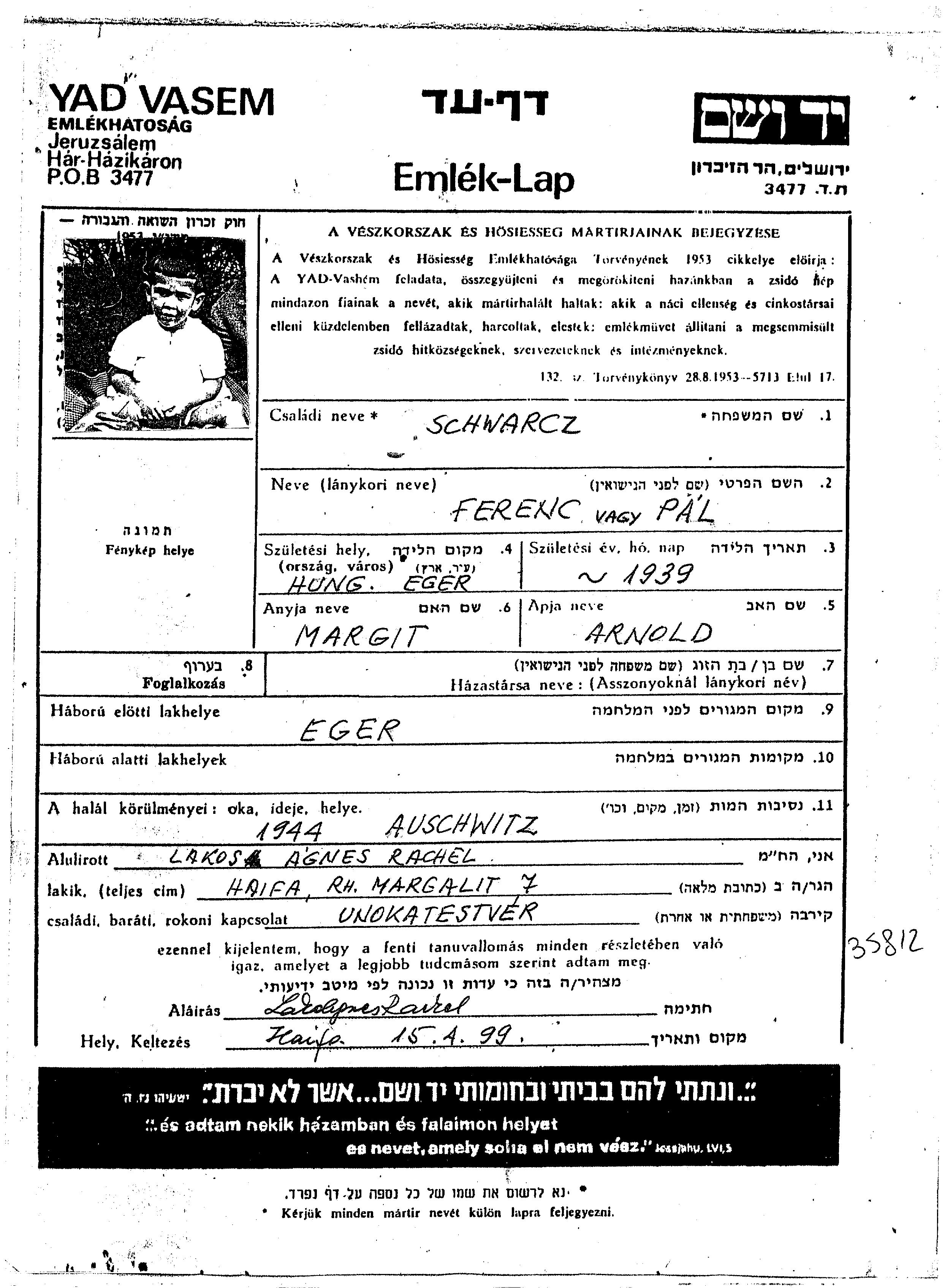 Pal Ferentz Schwarcz wurde im Jahr 1939 in Eger, Ungarn geboren. Vor dem Zweiten Weltkrieg lebte er in Eger, Ungarn.
