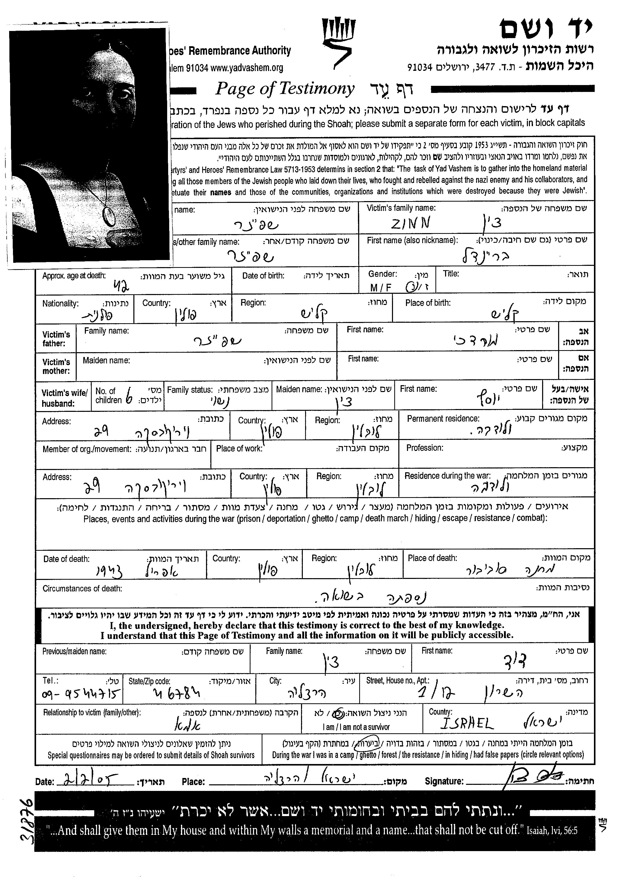 Braindel Zinn wurde im Jahr 1901 in Kalisz, Polen geboren. Vor dem Zweiten Weltkrieg lebte sie in Wlodawa, Polen.