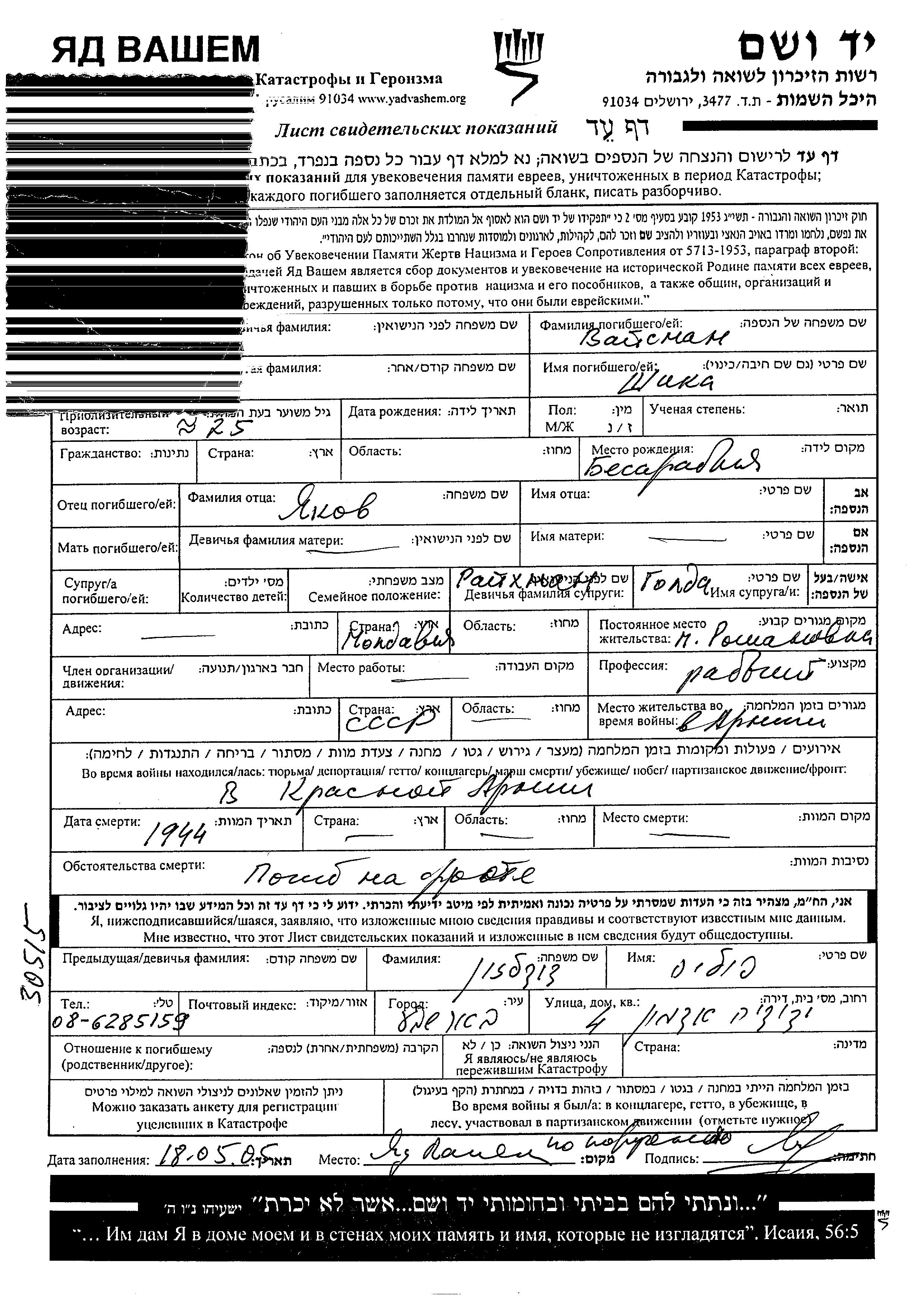 Shika Vaisman wurde im Jahr 1919 in Bessarabia, Rumänien geboren. Er war Arbeiter/-in. Vor dem Zweiten Weltkrieg lebte er in Romanesti, Rumänien.
