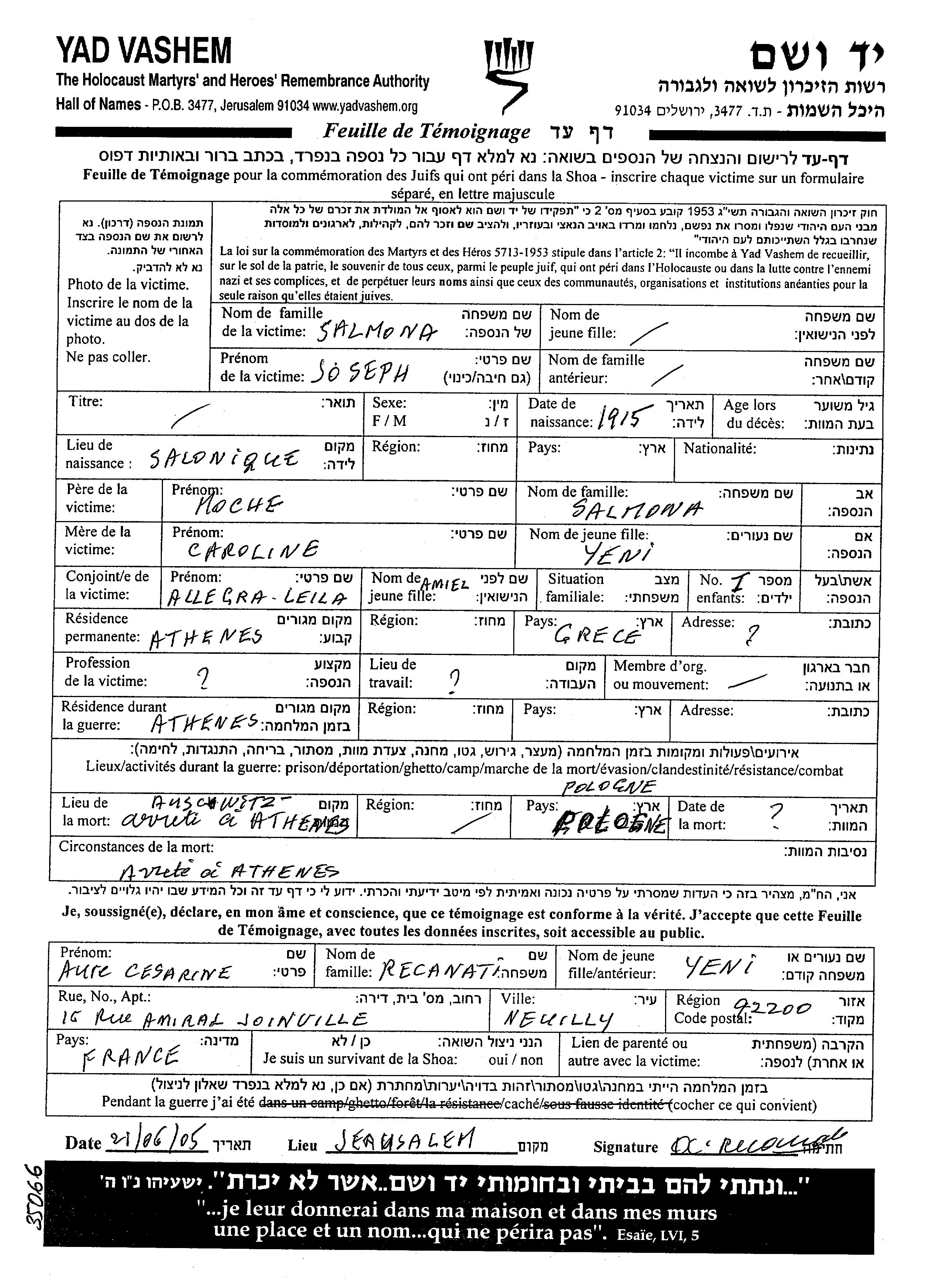 Joseph Salmona wurde im Jahr 1915 in Thessaloniki, Griechenland geboren. Vor dem Zweiten Weltkrieg lebte er in Athens, Griechenland.