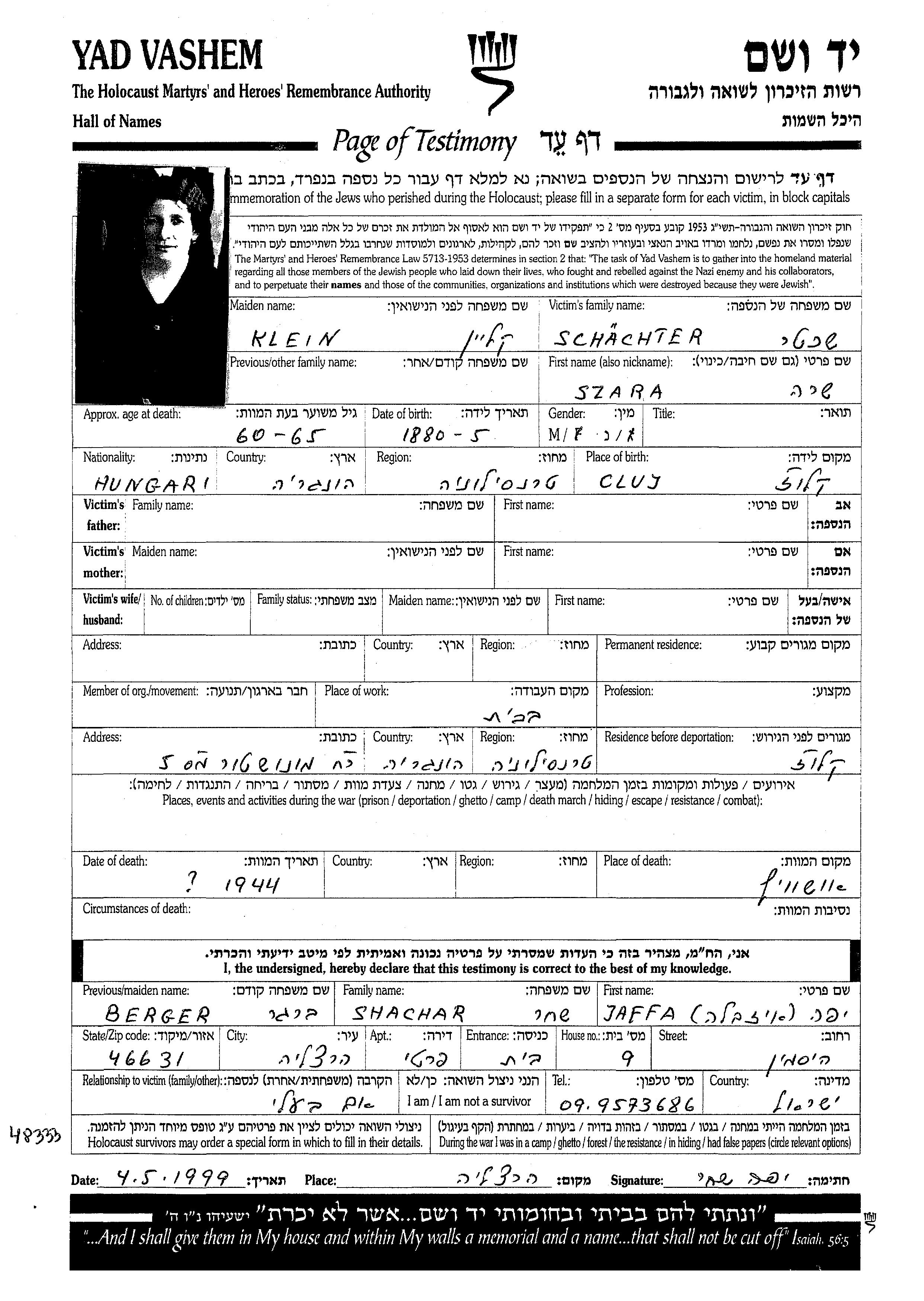 Sara Shekhter, geb. Klein wurde im Jahr 1880 in Cluj, Rumänien geboren.