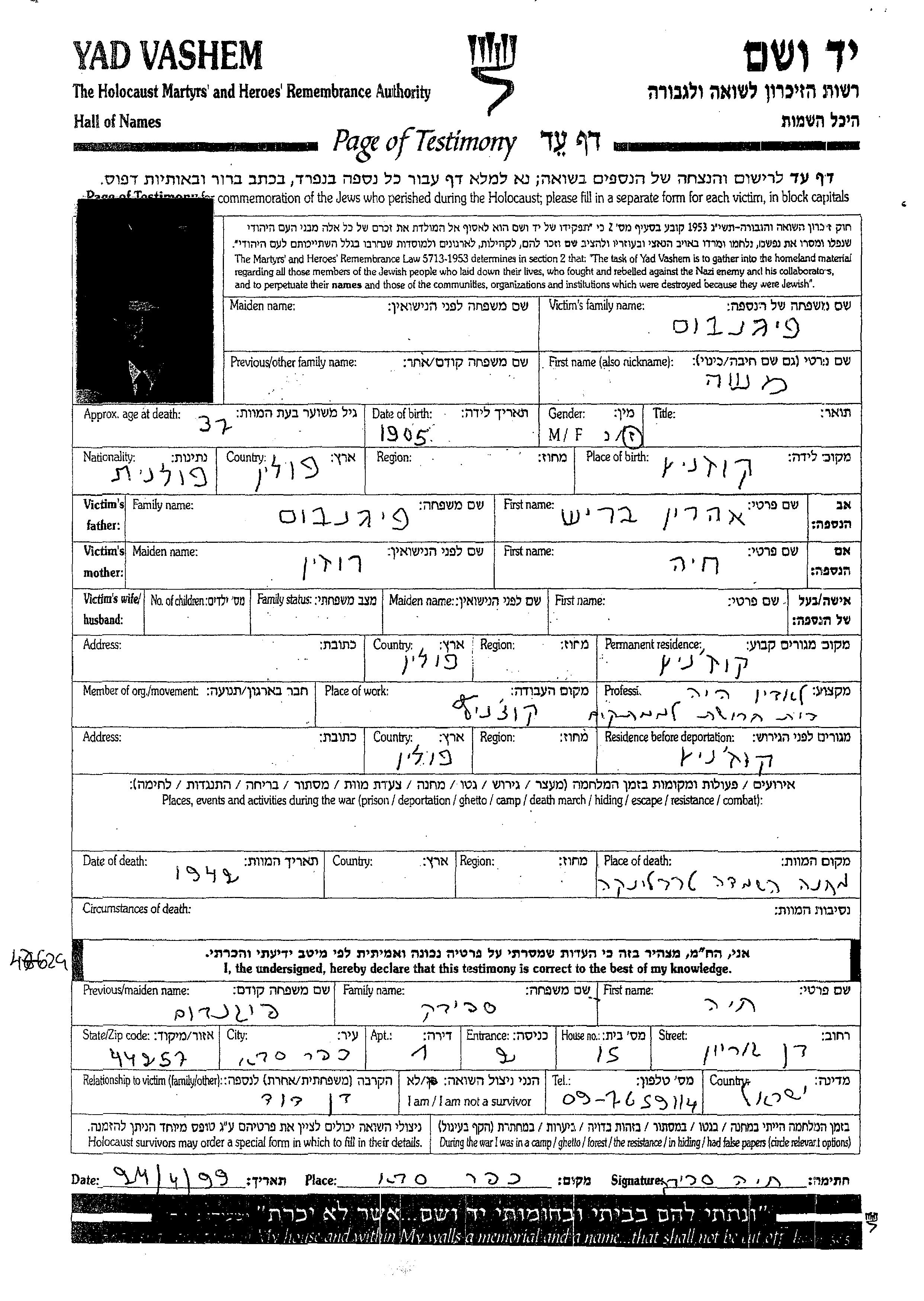 Moshe wurde in der Schoah ermordet. Todesort: Treblinka, Polen im Jahr 1942.