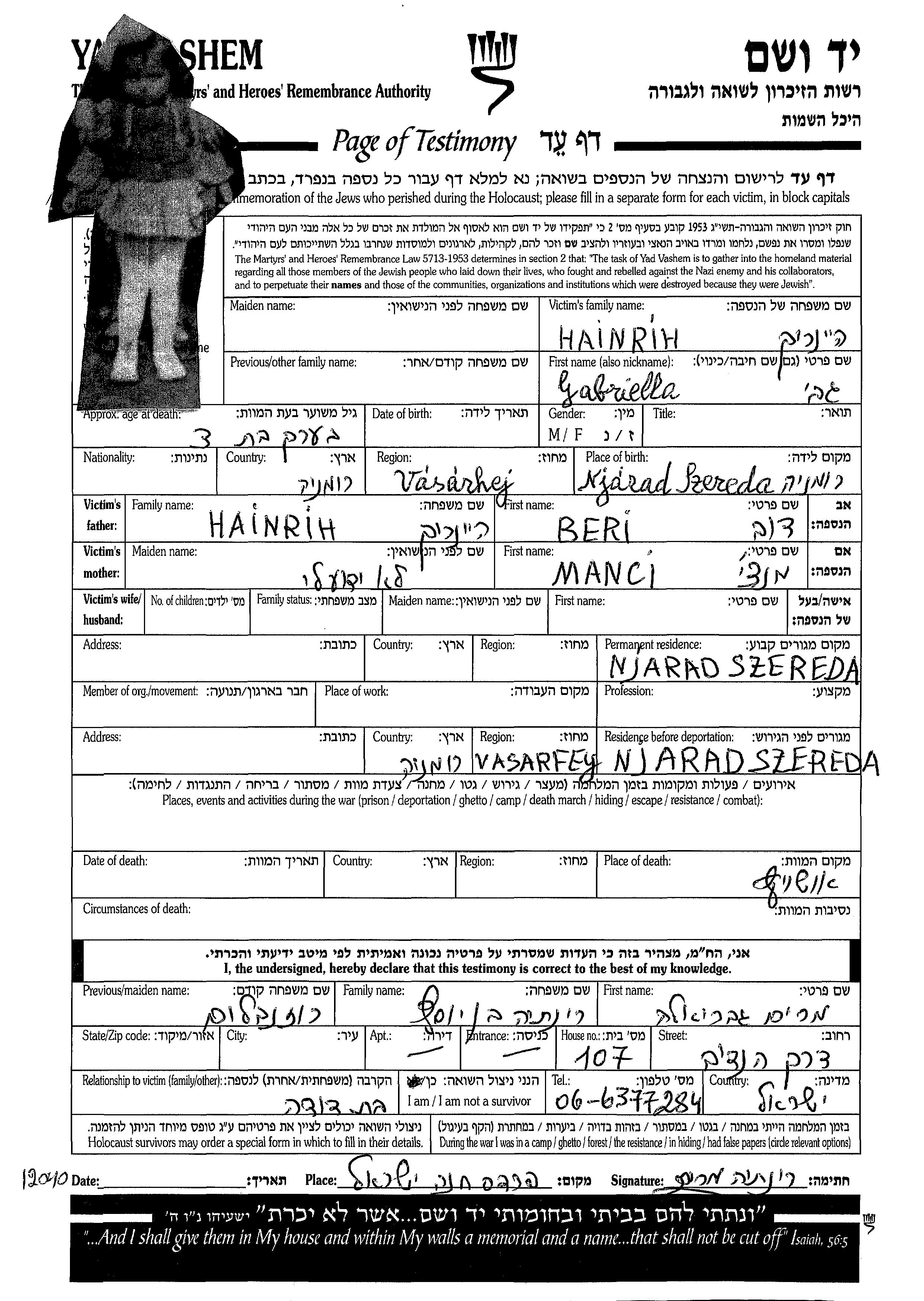Hainrih | Gabi Gabriella | Niara Cerede, Rumänien | Gedenkblatt | |