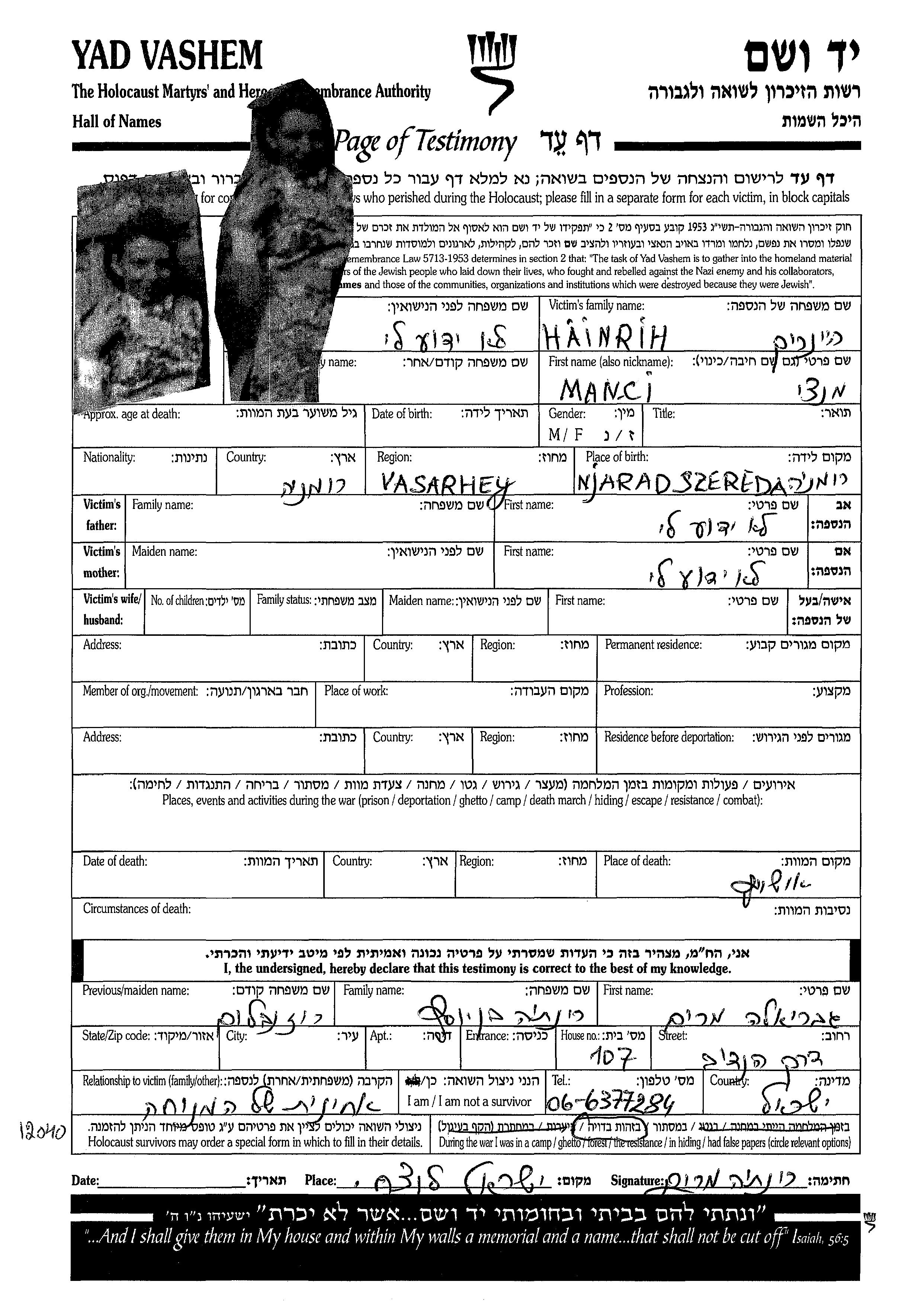 Manci wurde in der Schoah ermordet. Todesort: Auschwitz, Polen.