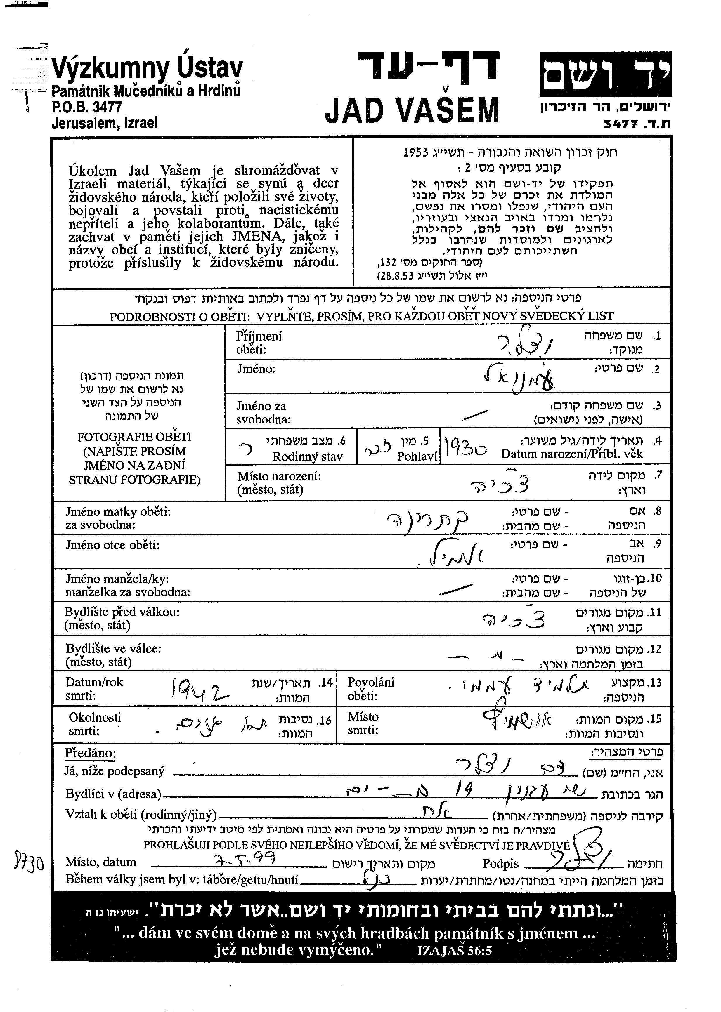 Emanuel Vetzler wurde im Jahr 1930 in Bohemia, Tschechoslowakei geboren. Er war Schüler/-in. Vor dem Zweiten Weltkrieg lebte er in Bohemia, Tschechoslowakei.