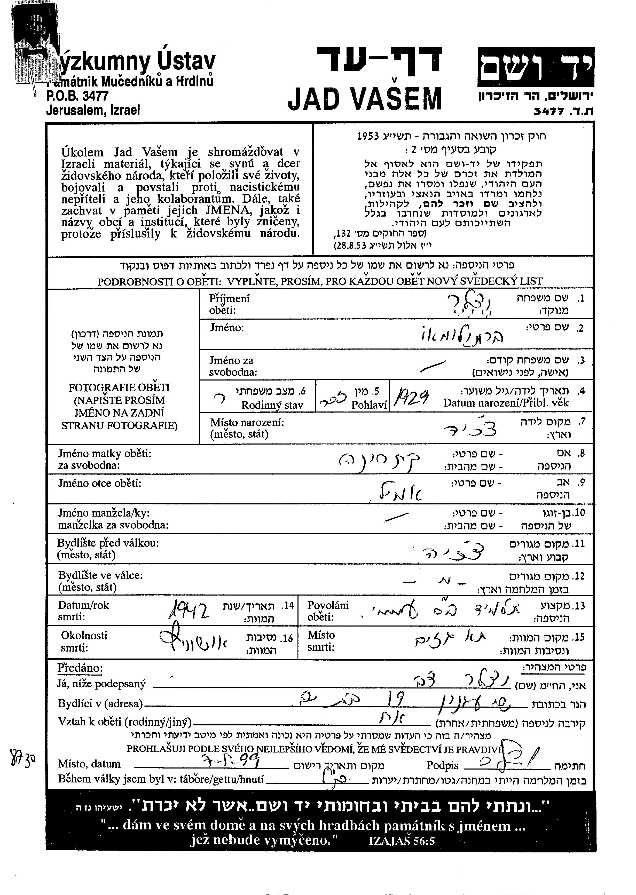 Bartolomeo Vetzler wurde im Jahr 1929 in Tschechoslowakei geboren. Er war Grundschüler. Vor dem Zweiten Weltkrieg lebte er in Tschechoslowakei.