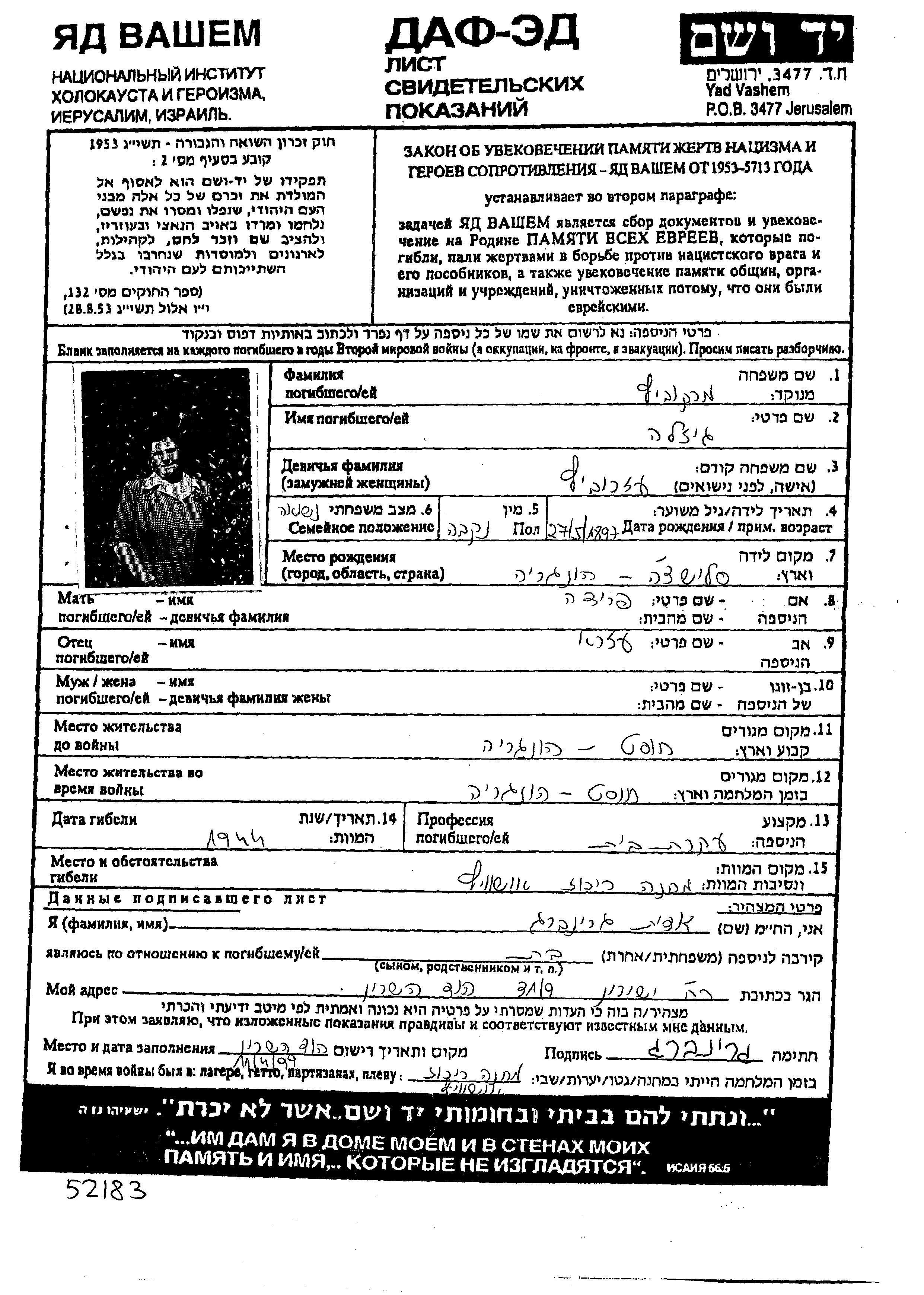 Markovitz | Gizela | 1897 | Chust, Tschechoslowakei | Gedenkblatt |