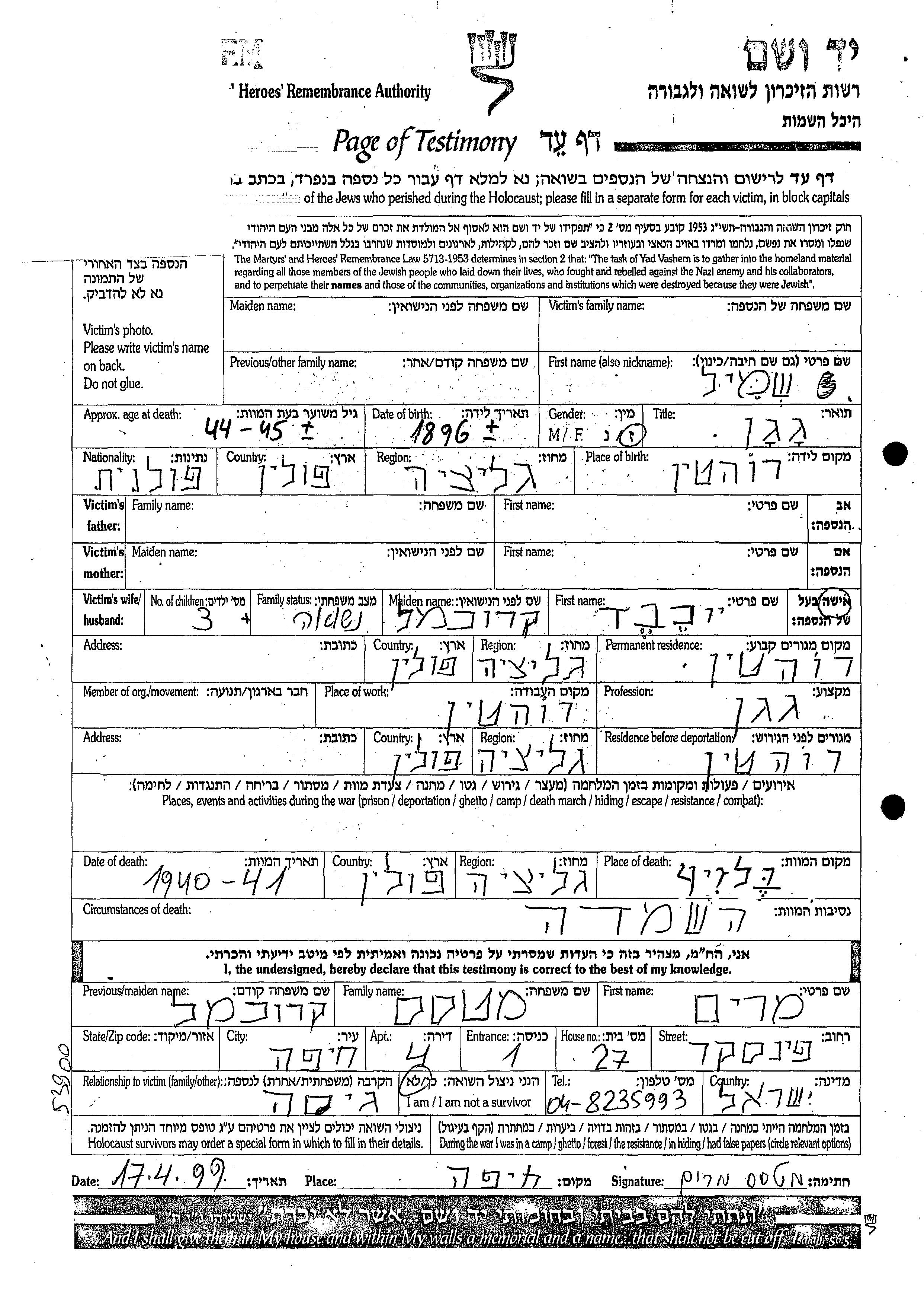 Shmil wurde in der Schoah ermordet. Todesort: Belzec, Polen im Jahr 1940.