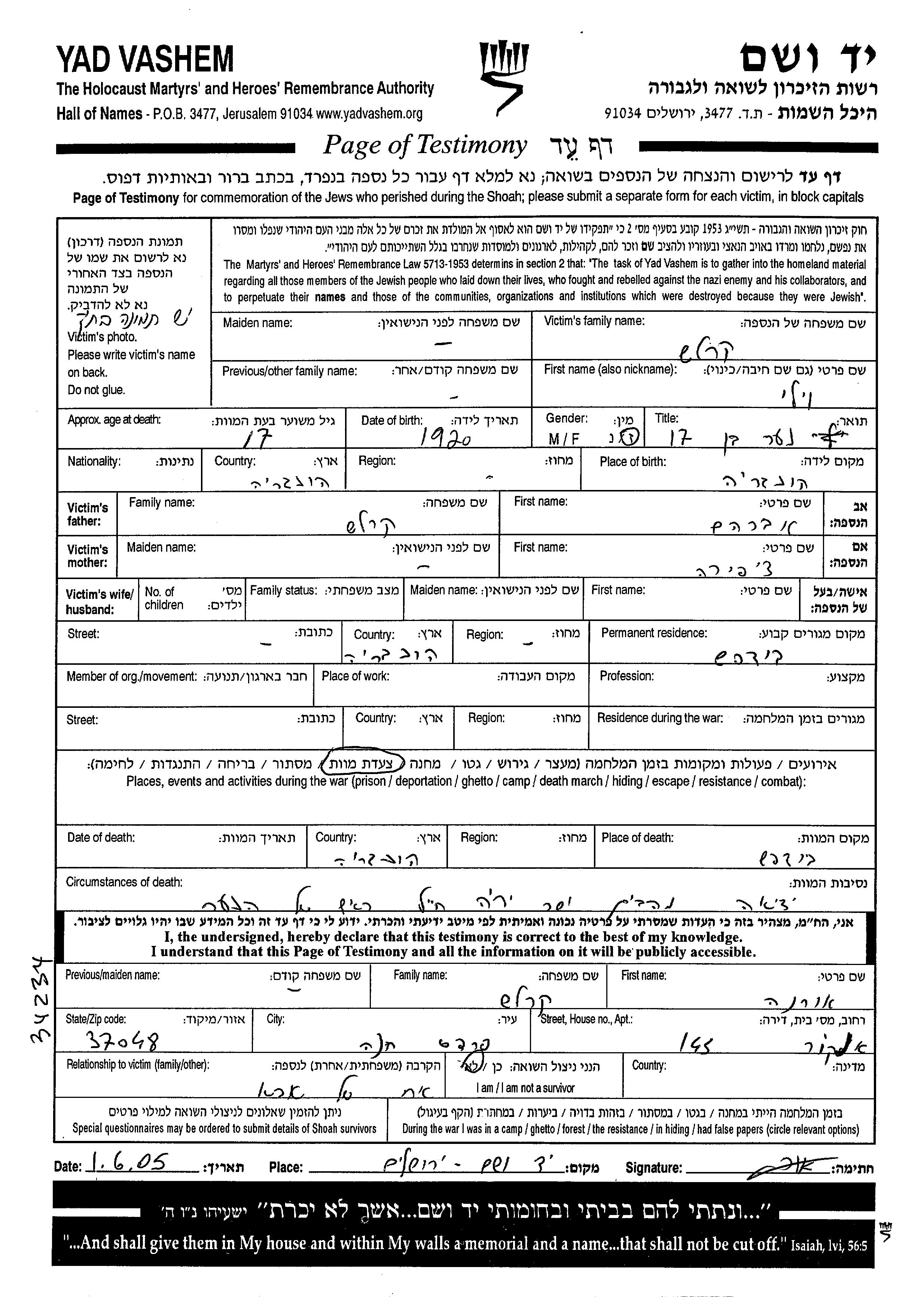 Vilhelm wurde in der Schoah ermordet. Todesort: Budapest, Ungarn.