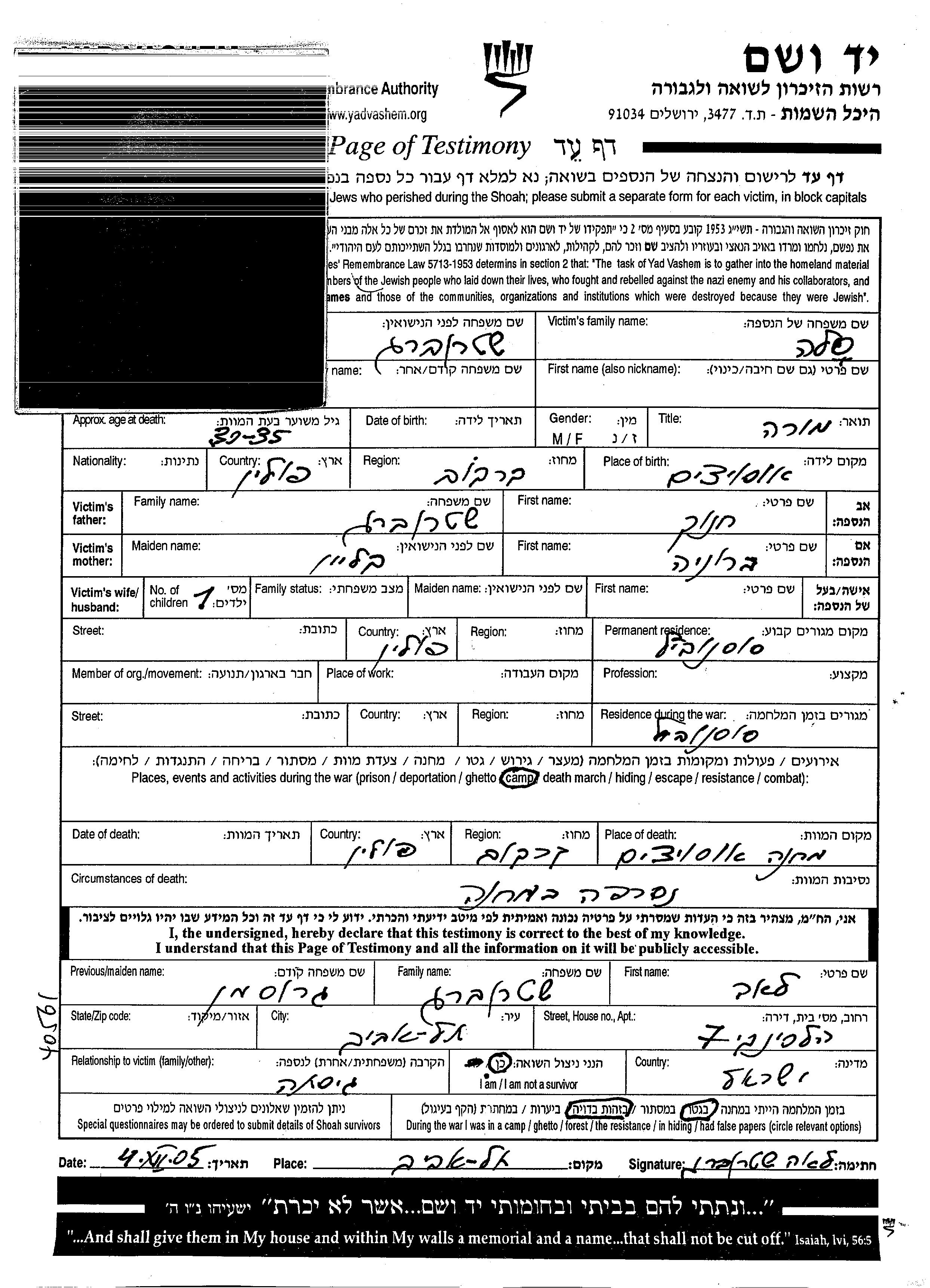Sala wurde in der Schoah ermordet. Todesort: Auschwitz, Polen.