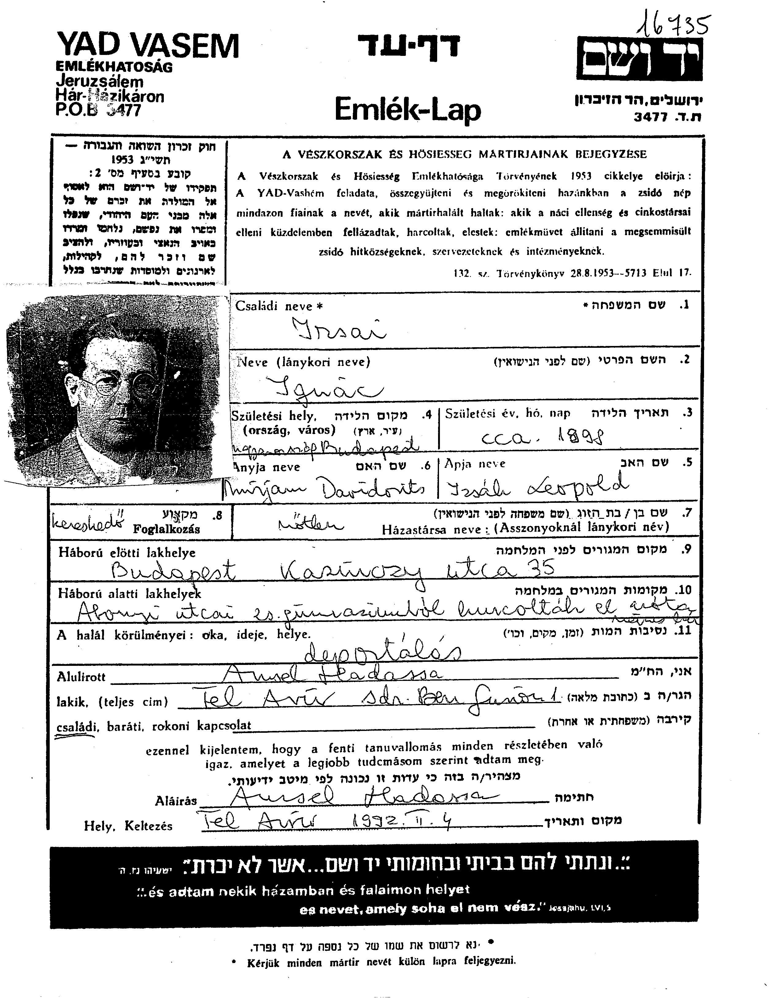 Ignac Irsai wurde im Jahr 1898 in Budapest, Ungarn geboren. Er war Kaufmann/-frau. Vor dem Zweiten Weltkrieg lebte er in Budapest, Ungarn.