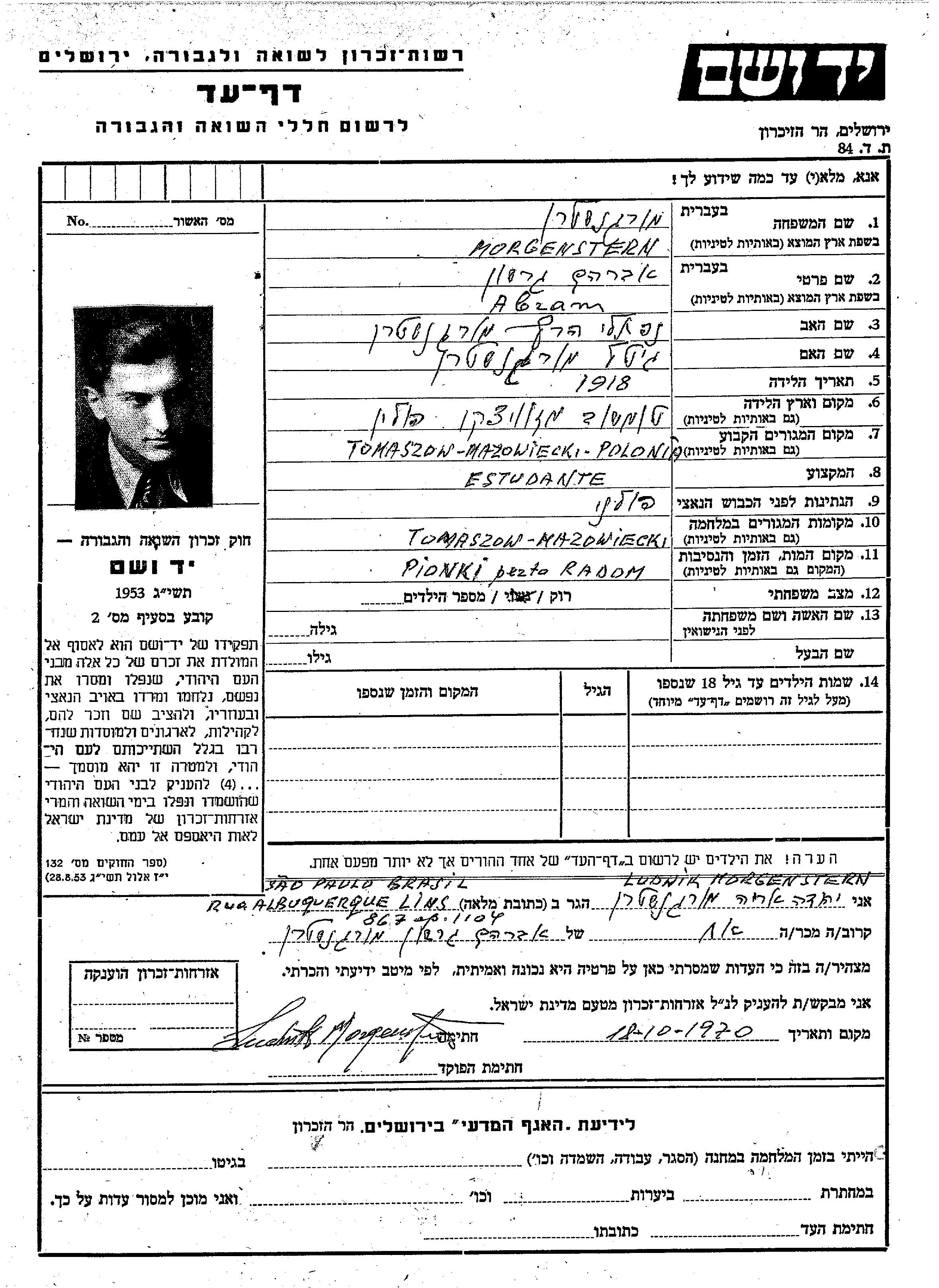 Morgenstern | Abram Gershon | 1918 | Tomaszow Mazowiecki, Polen | Photos |