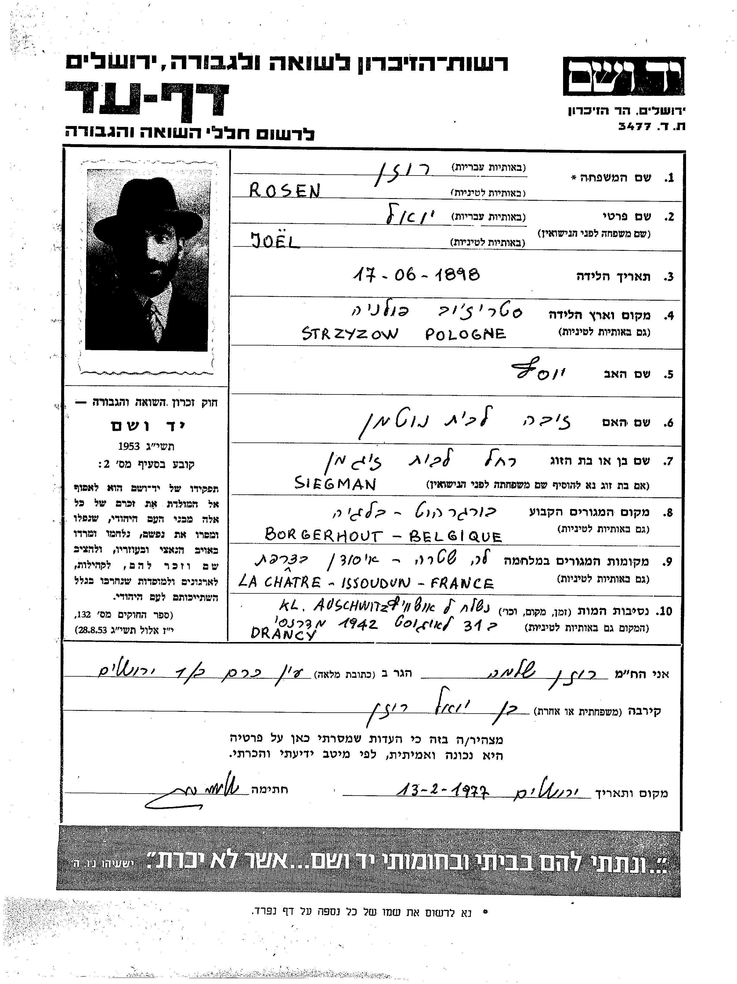 Joel wurde in der Schoah ermordet. Todesort: Auschwitz, Polen.