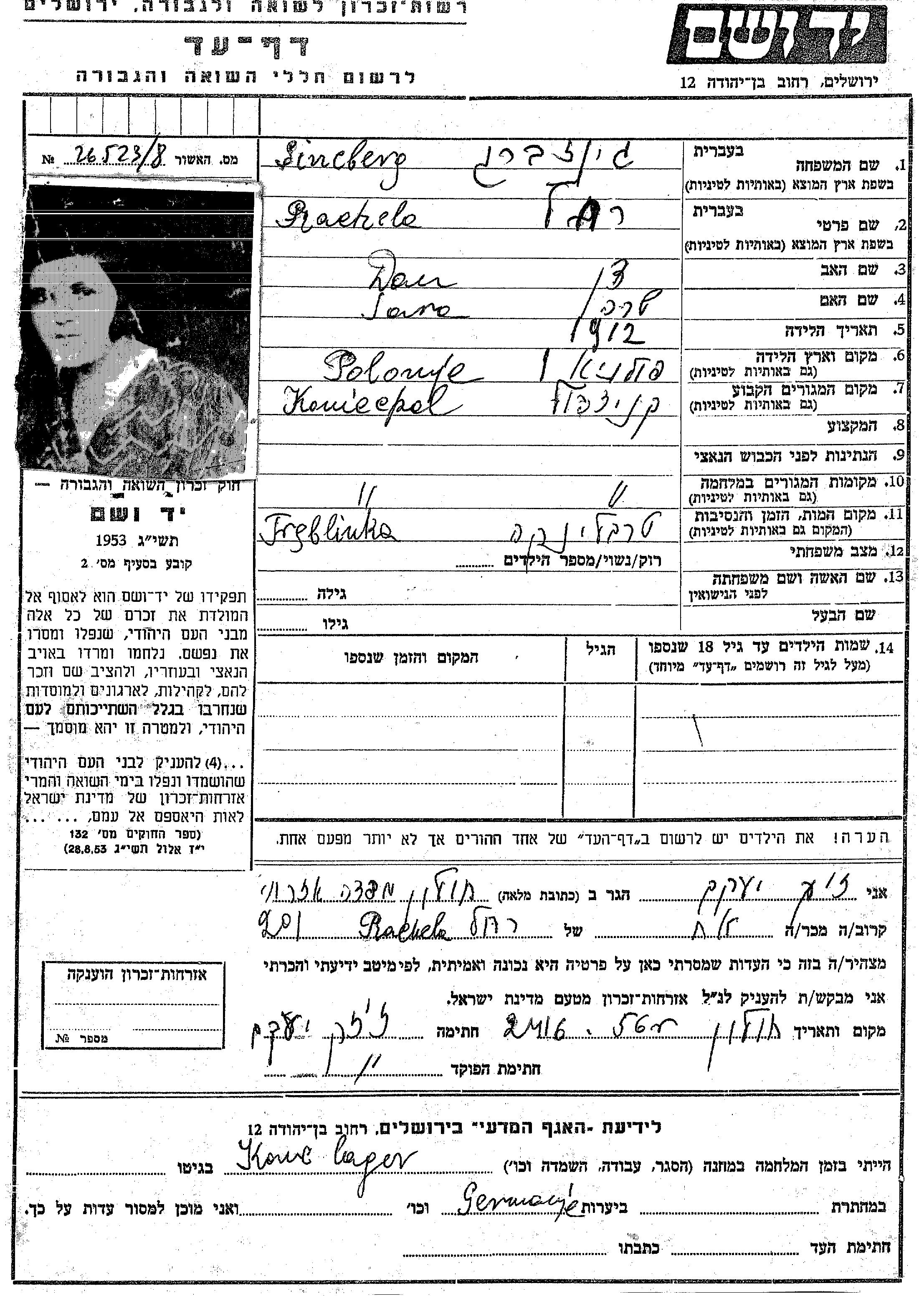 Rachela wurde in der Schoah ermordet. Todesort: Treblinka, Polen.