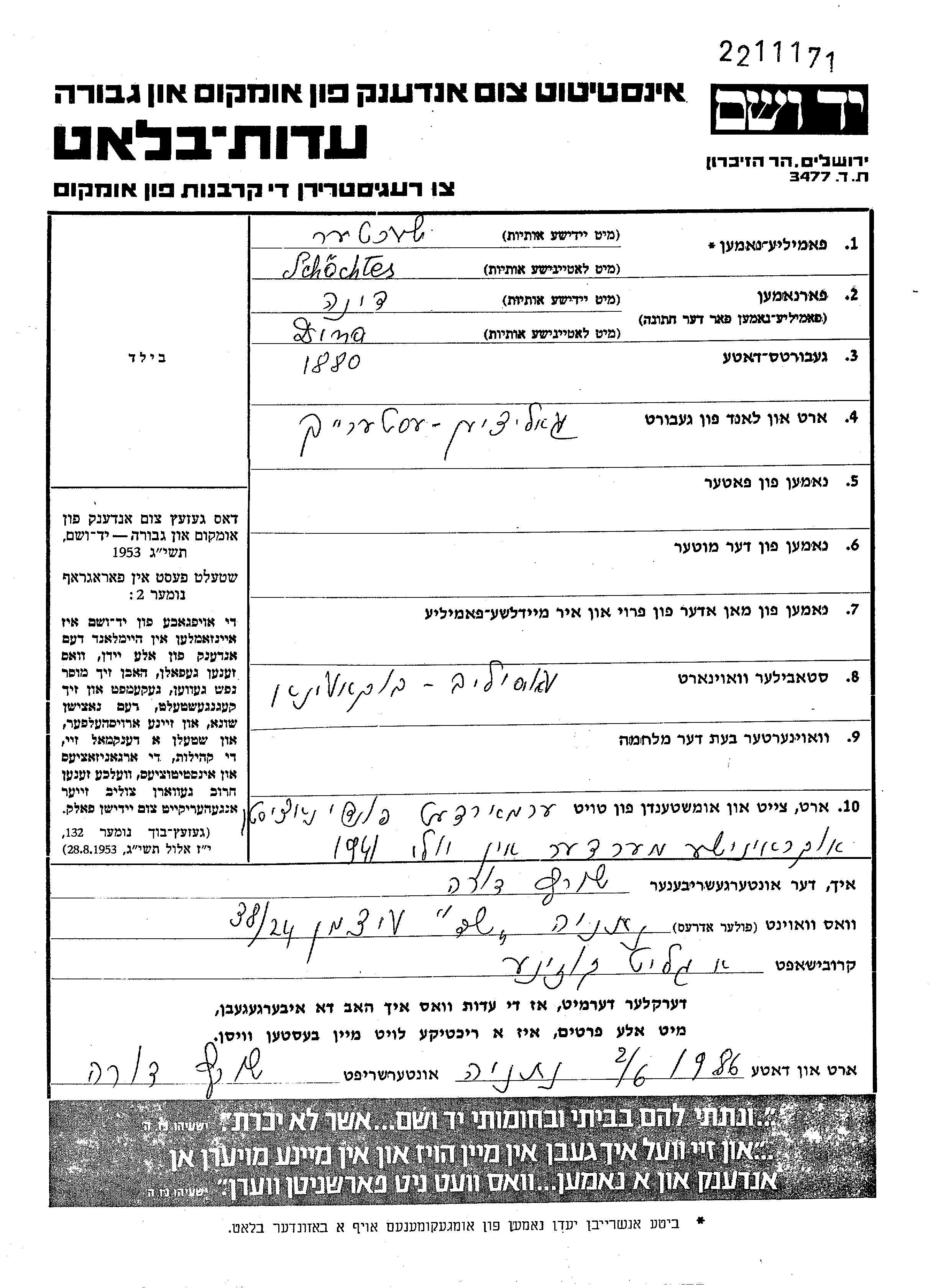 Schächter Dina Vasilev, Rumänien Gedenkblatt