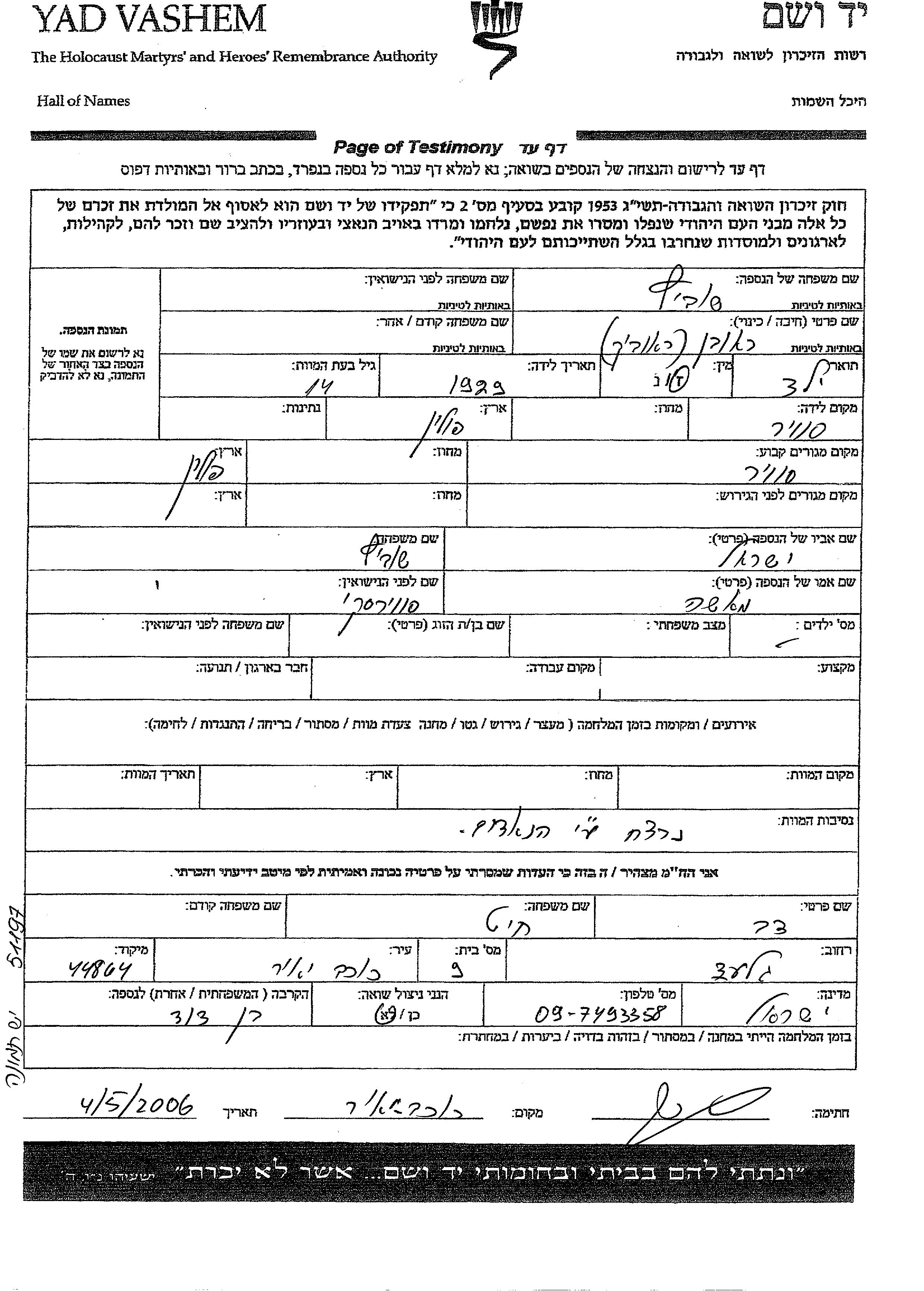 Reuven wurde in der Schoah ermordet. Todesort: unbekannter Ort.