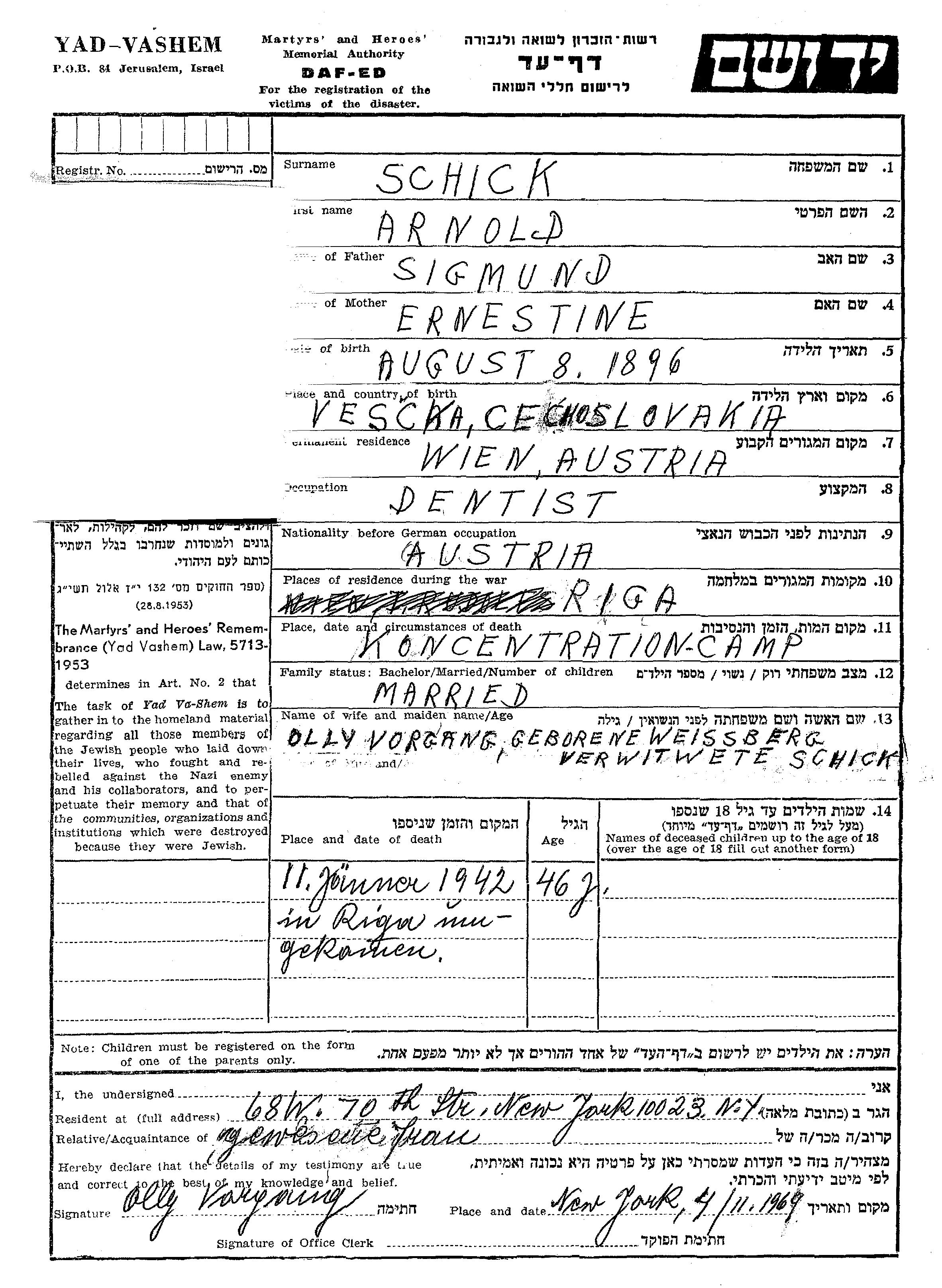 Arnold wurde in der Schoah ermordet. Todesort: Riga, Lettland im Jahr 11/01/1942.