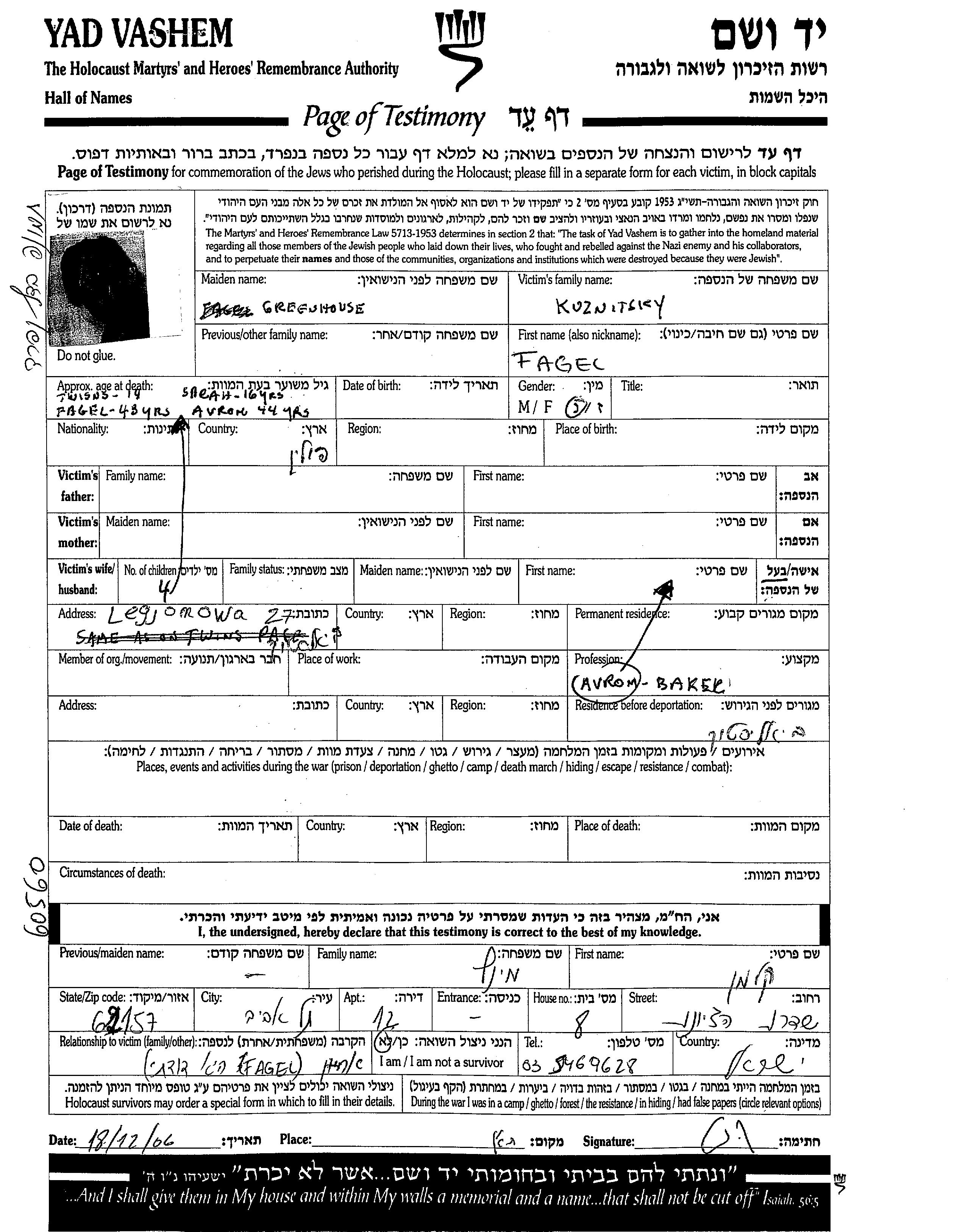 Fagel Kuznitsky, geb. Greenhouse wurde in Polen geboren. Vor dem Zweiten Weltkrieg lebte sie in Polen.