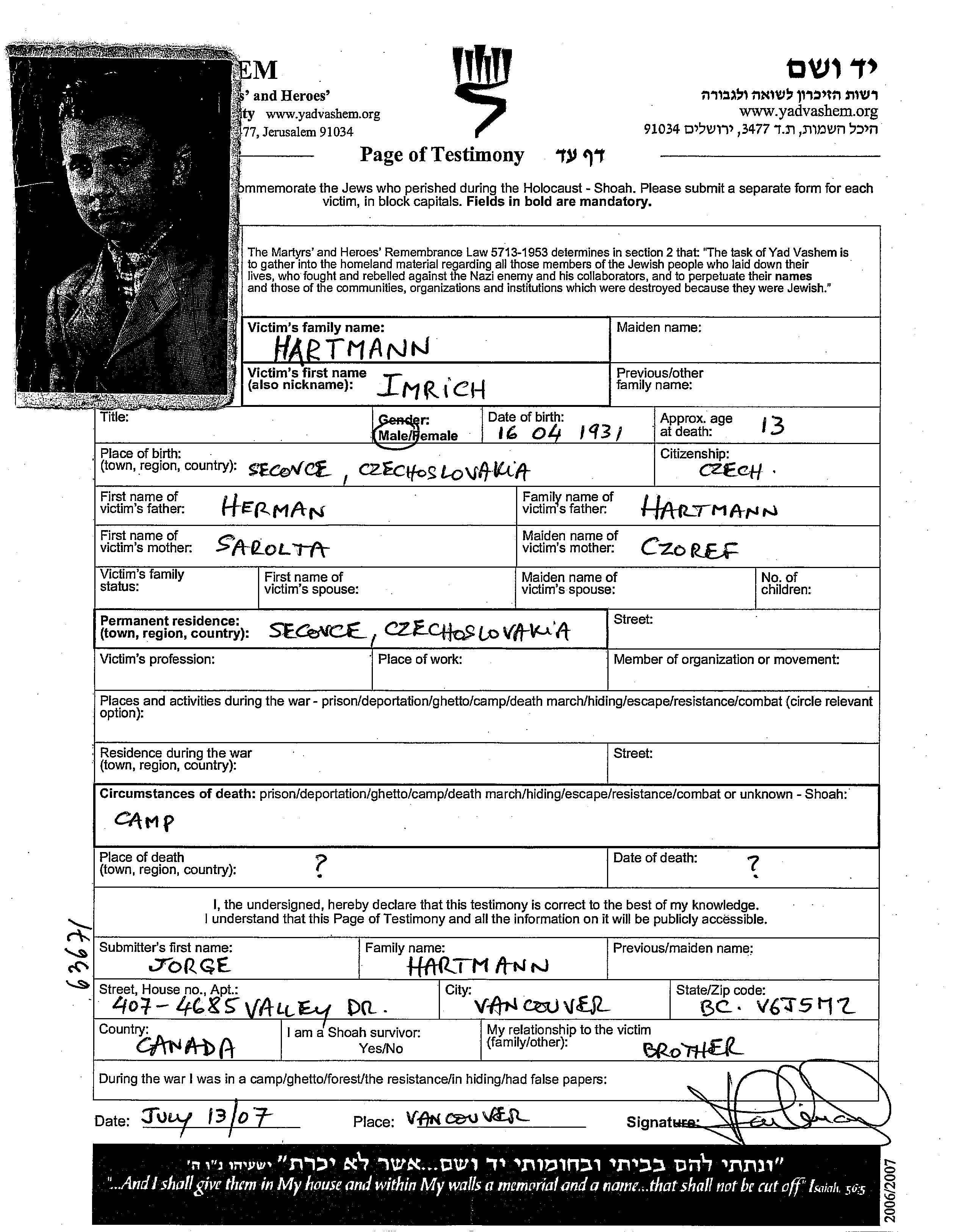 Hartmann | Imrich | 1931 | Secovce, Tschechoslowakei | Photos |