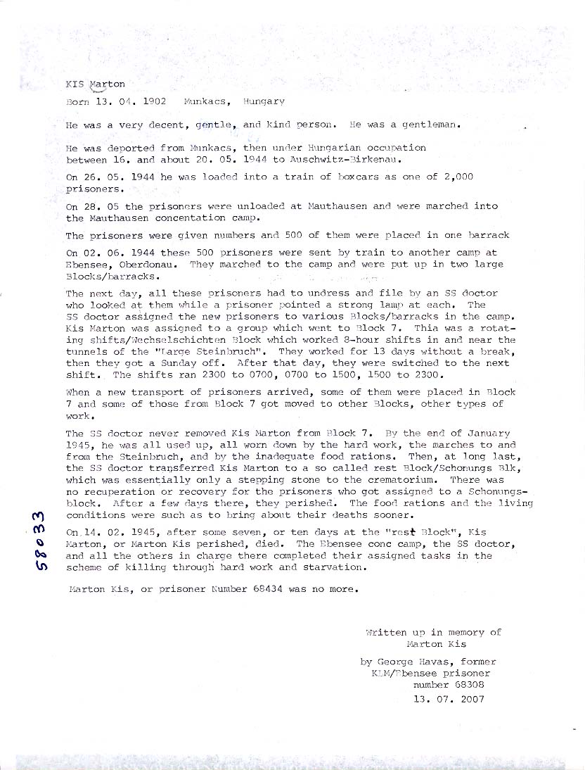 Marton Marci wurde in der Schoah ermordet. Todesort: Ebensee, Österreich im Jahr 14/02/1945.