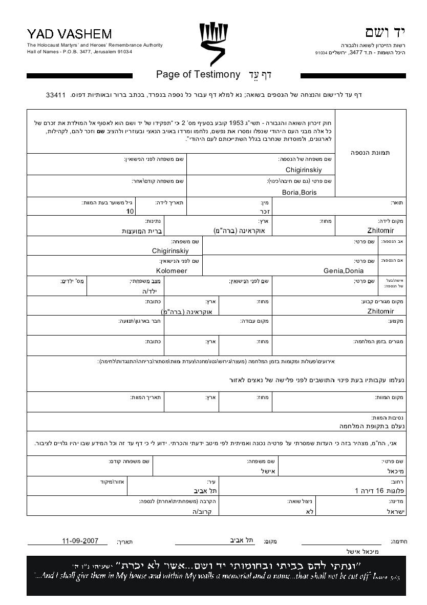 Boris wurde in der Schoah ermordet. Todesort: unbekannter Ort.