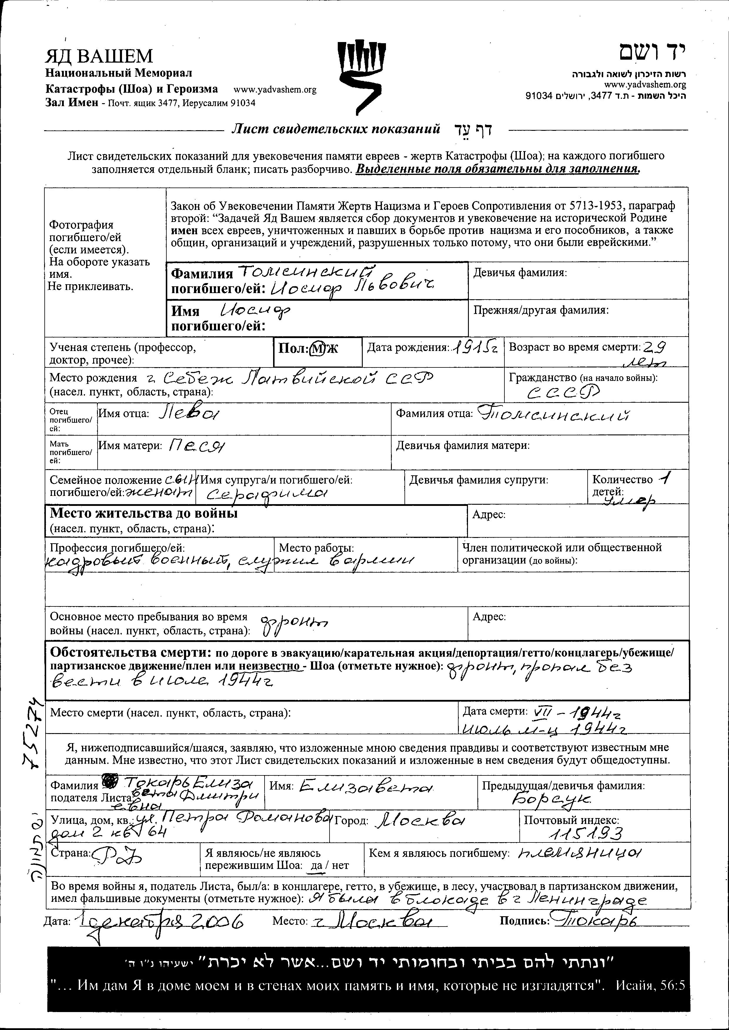 Iosif wurde in der Schoah ermordet. Todesort: unbekannter Ort im Jahr 07/1944.