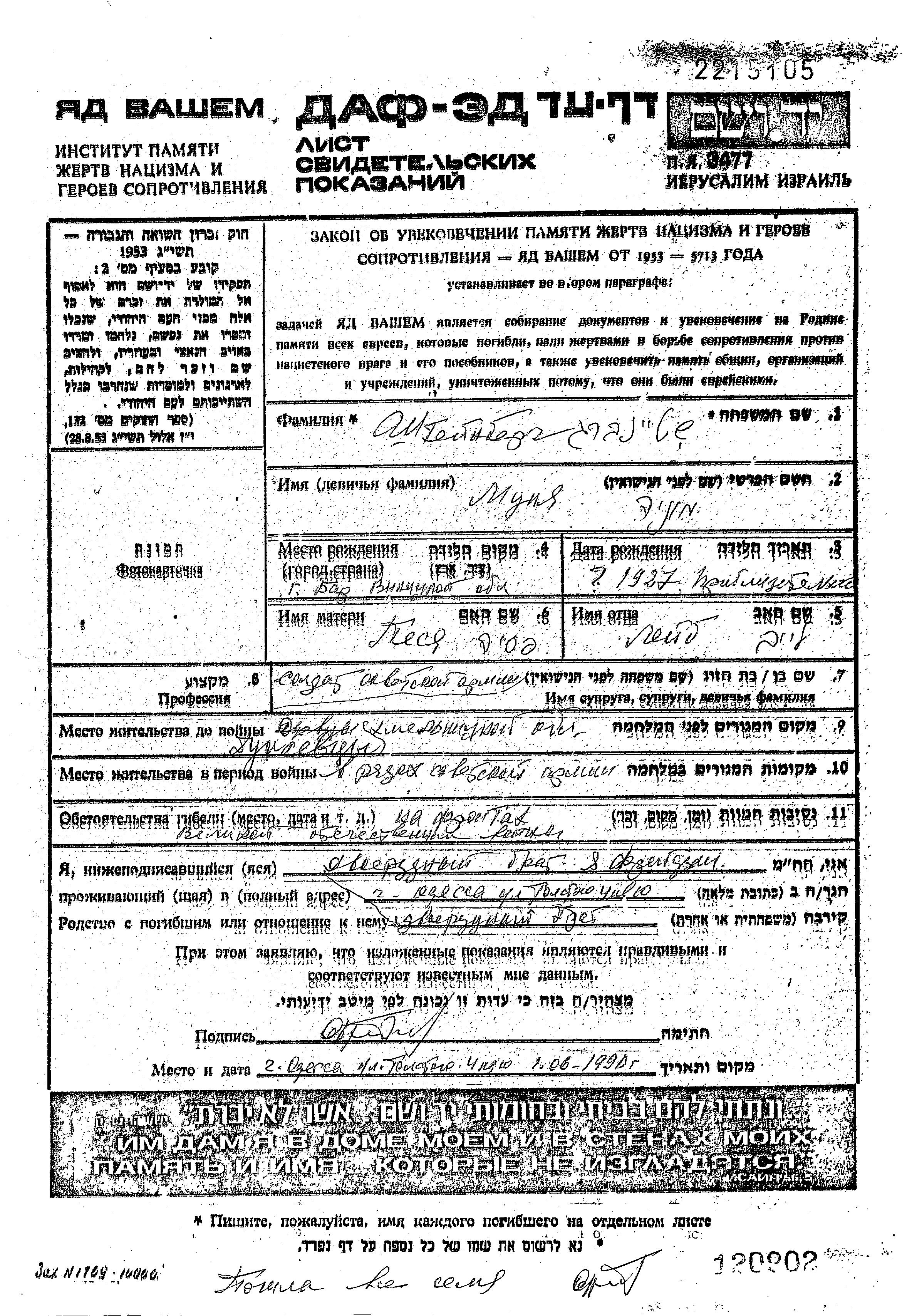 Shteinberg Munya Dunayevtsy, Ukraine (UdSSR) Gedenkblatt