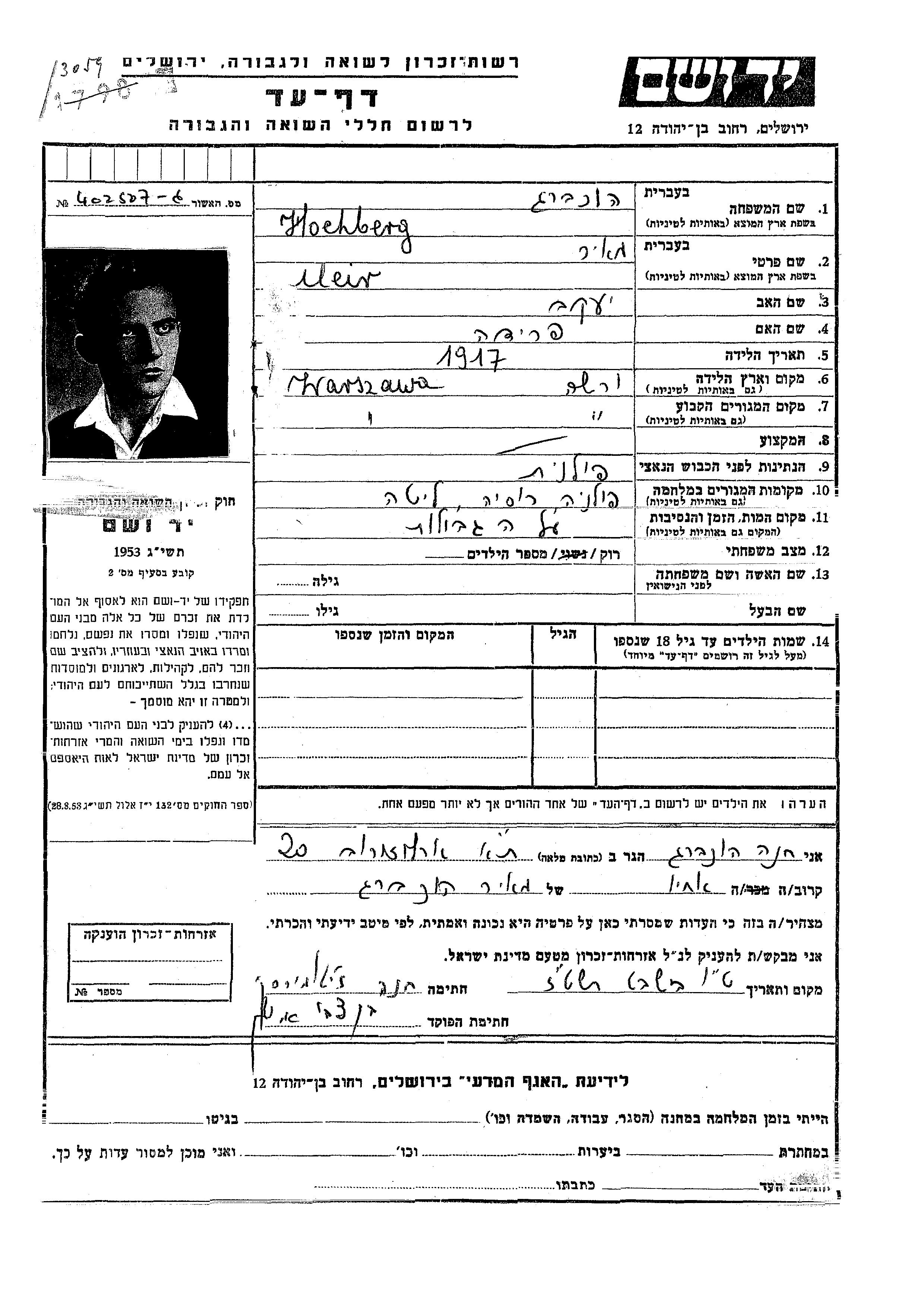 Meir Hochberg wurde im Jahr 1917 in Warszawa, Polen geboren. Vor dem Zweiten Weltkrieg lebte er in Warszawa, Polen.