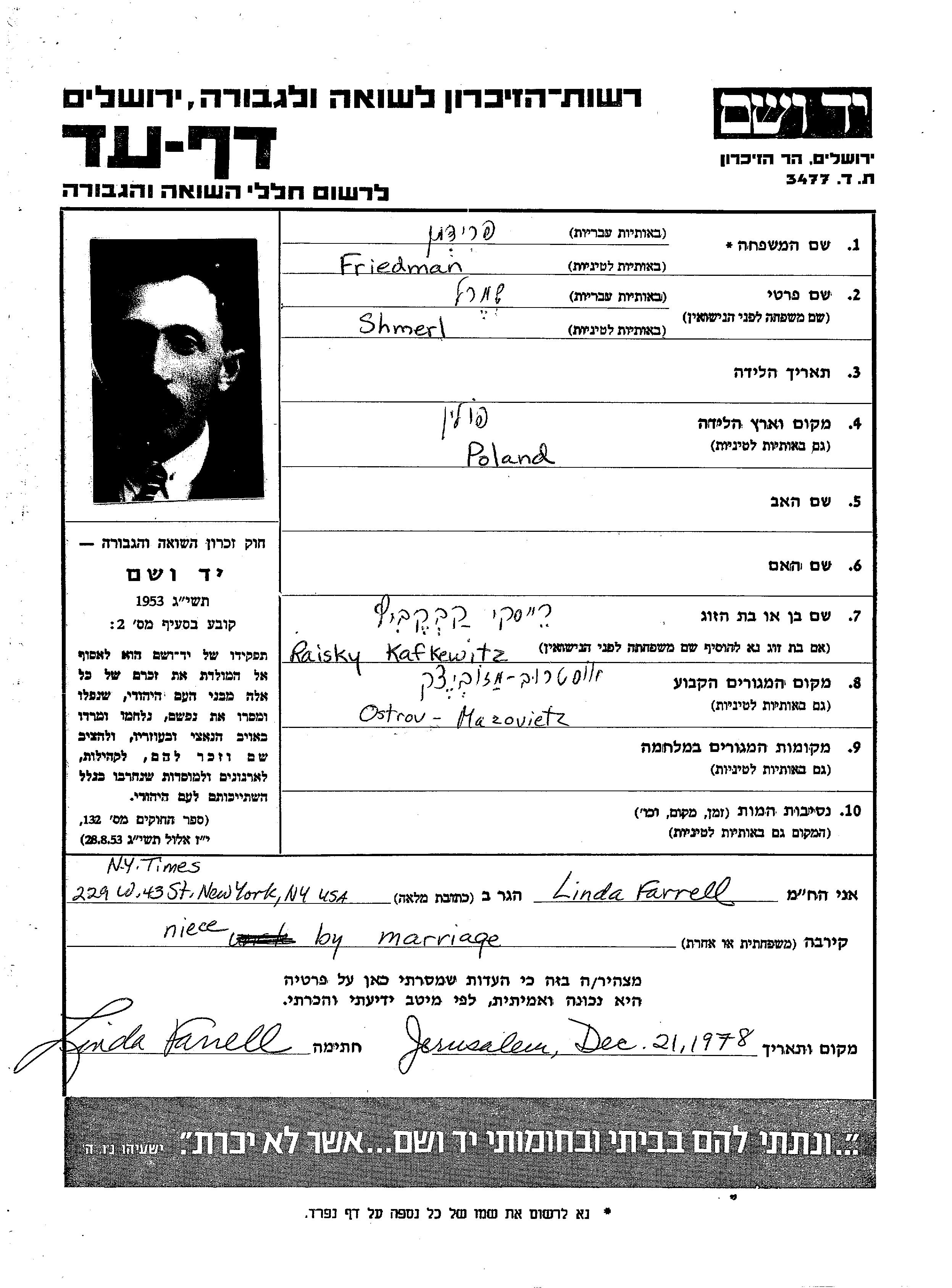 Friedman | Shmariahu | Ostrow Mazowiecki, Polen | Gedenkblatt | |