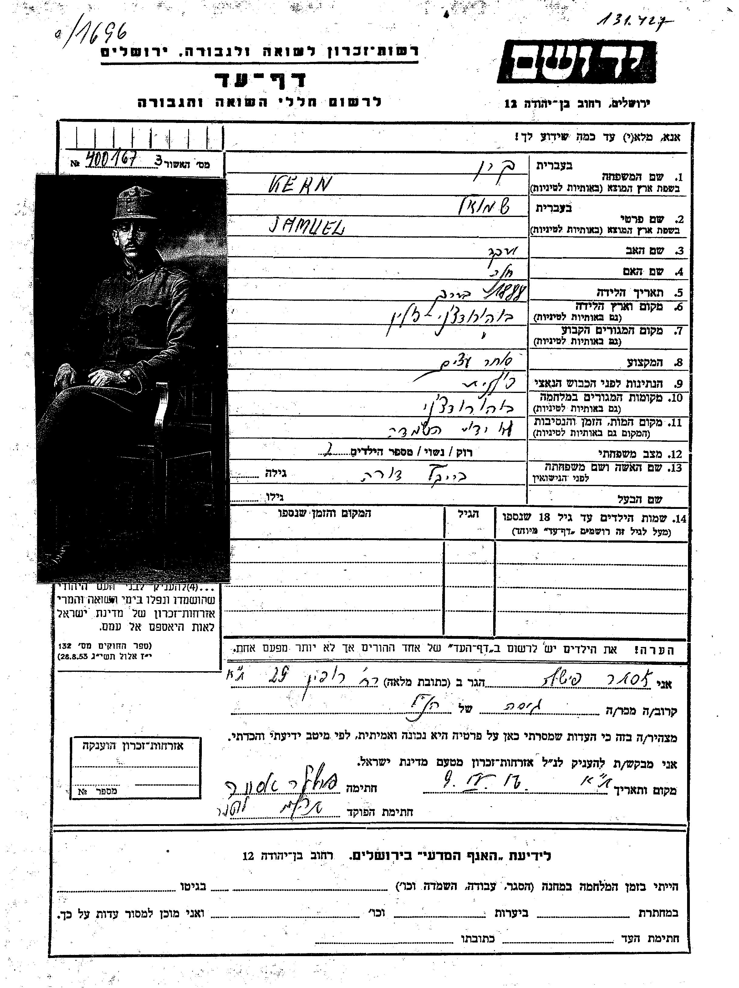 Shmuel wurde in der Schoah ermordet. Todesort: unbekannter Ort.