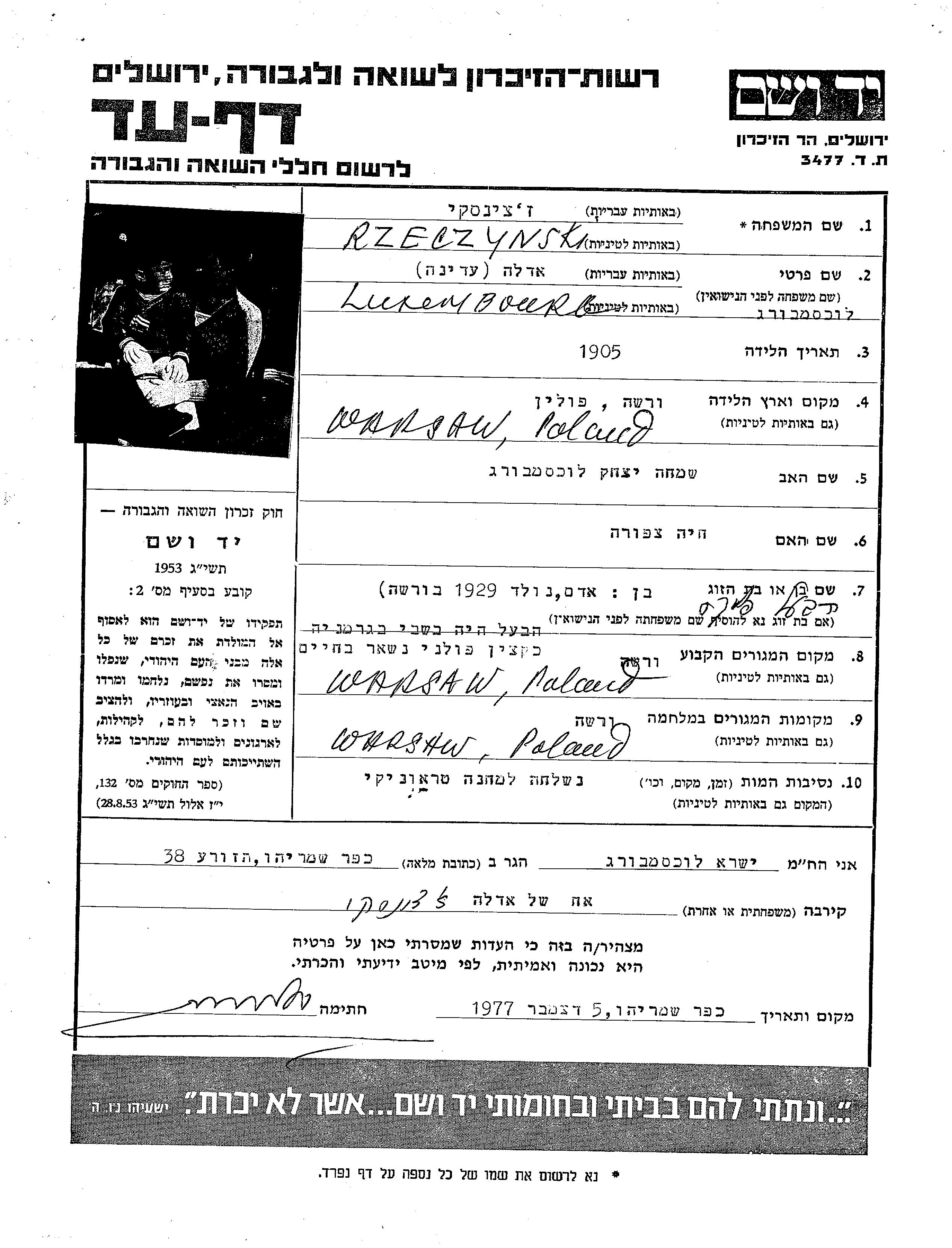 Adam Rzeczynski wurde im Jahr 1929 geboren. Vor dem Zweiten Weltkrieg lebte er in Warszawa, Polen.