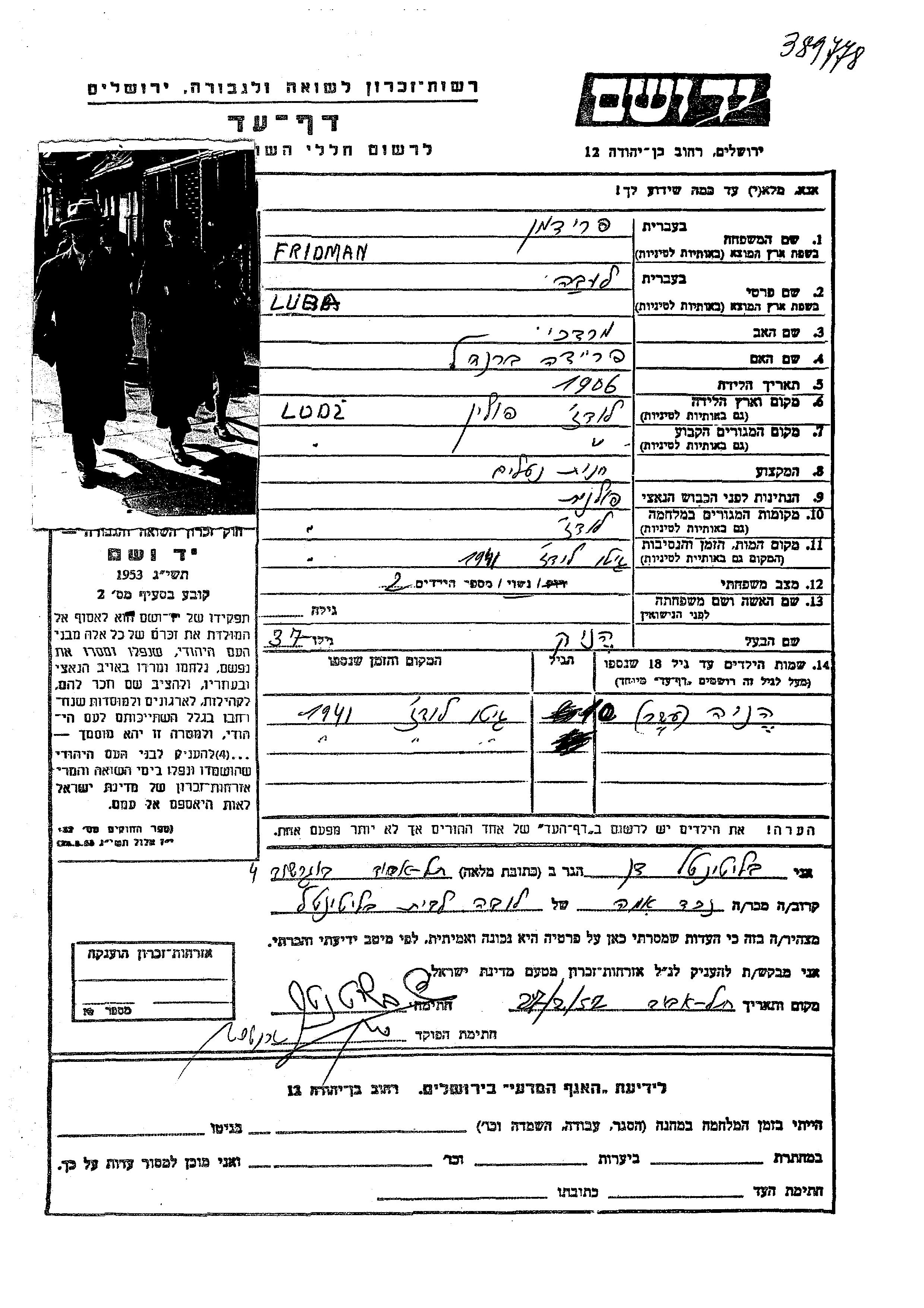 Luba Fridman wurde im Jahr 1906 in Łódź, Polen geboren. Vor dem Zweiten Weltkrieg lebte sie in Łódź, Polen.