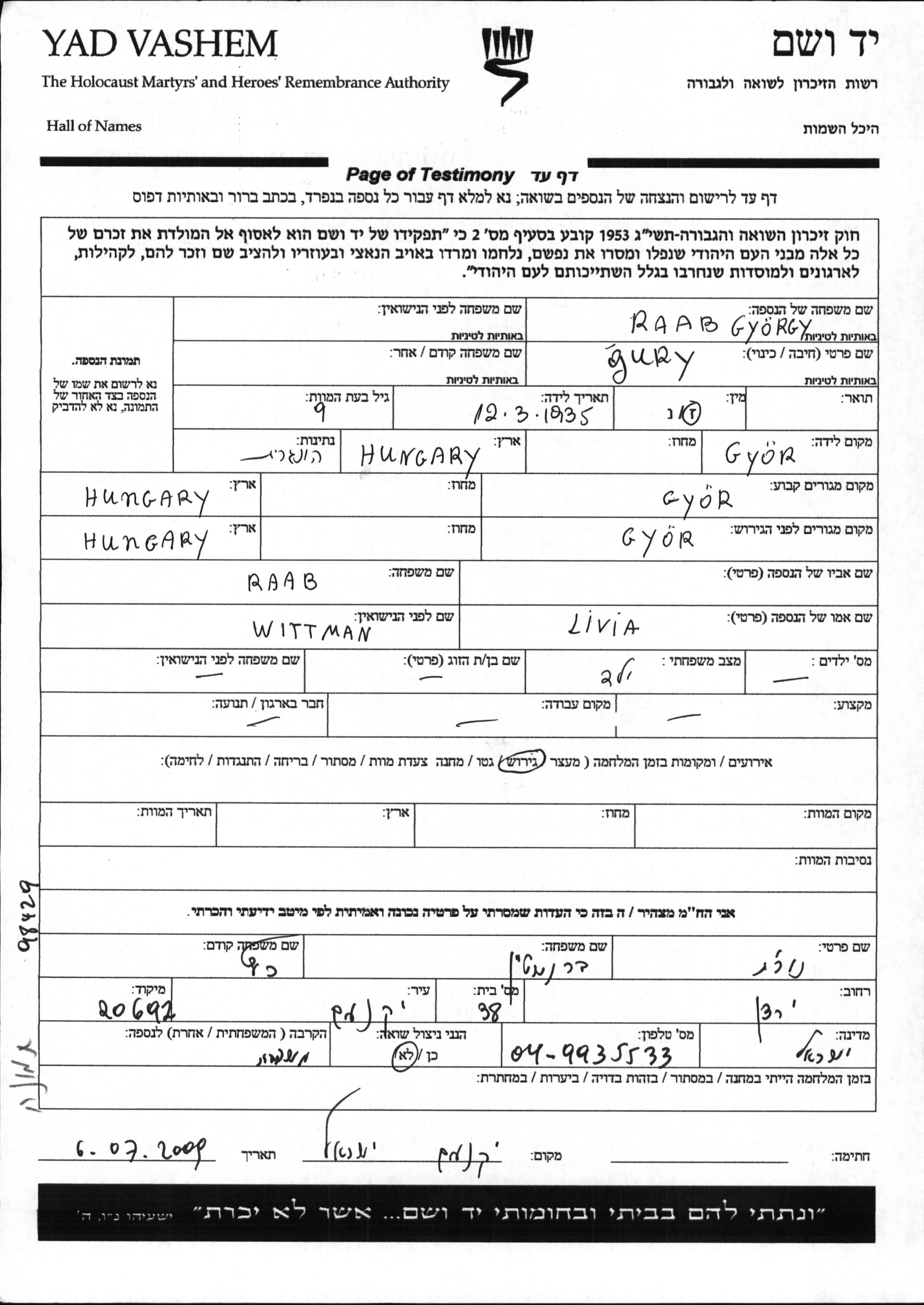 Gyorgy wurde in der Schoah ermordet. Todesort: unbekannter Ort im Jahr 1944.