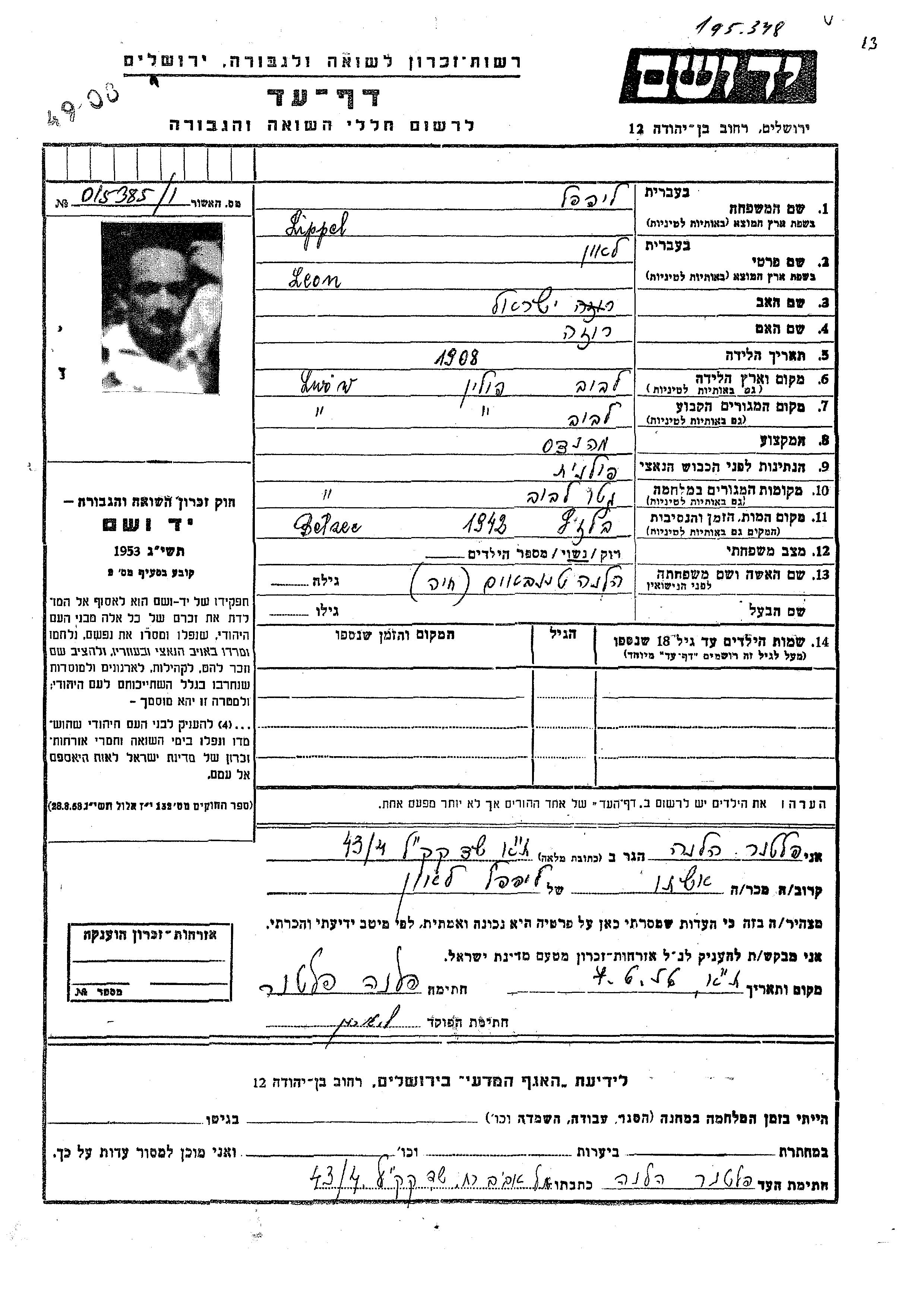 Leon Lippel wurde im Jahr 1908 in Lwow, Polen geboren. Er war Ingenieur. Vor dem Zweiten Weltkrieg lebte er in Lwow, Polen.