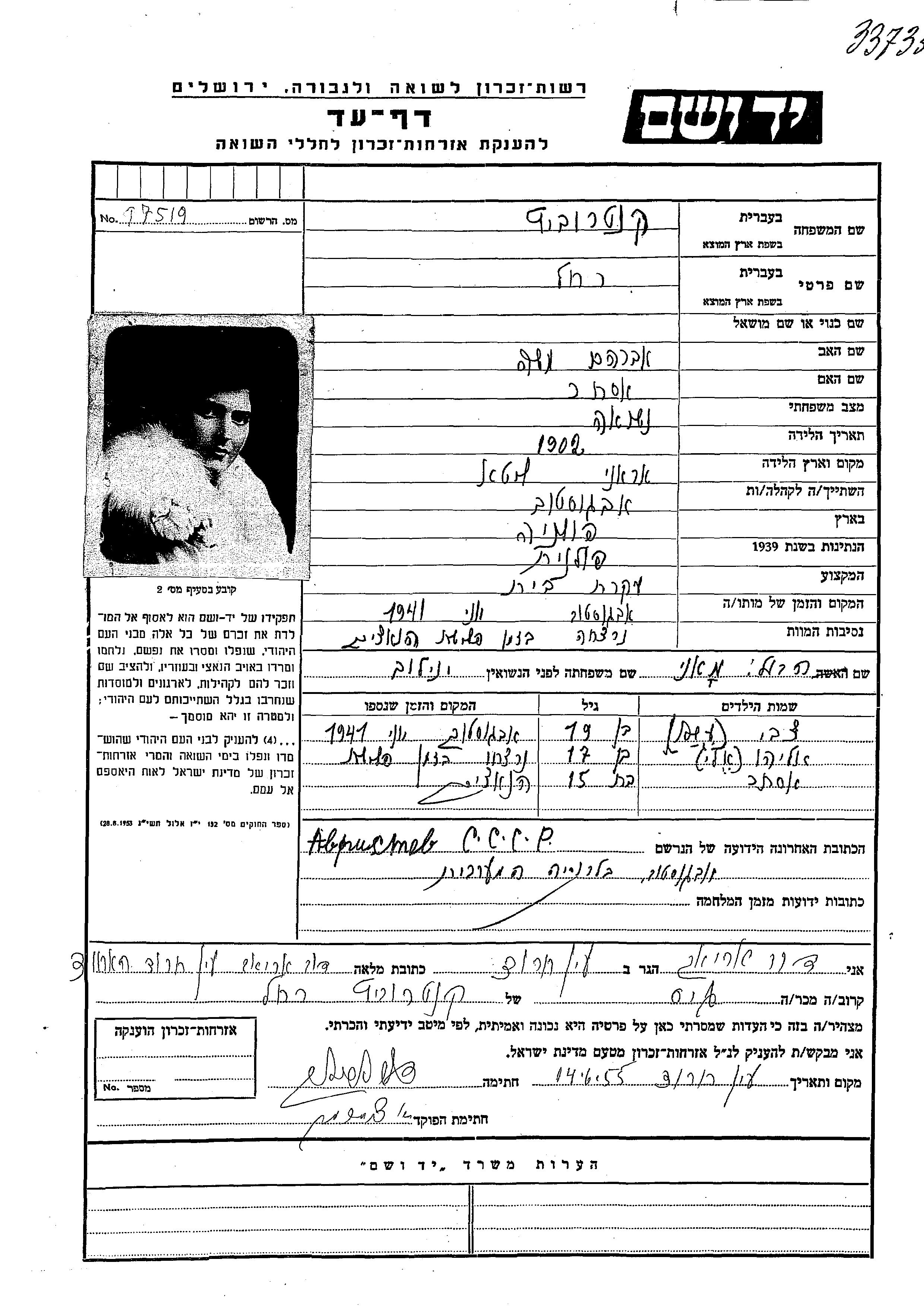 Tzvi wurde in der Schoah ermordet. Todesort: unbekannter Ort.