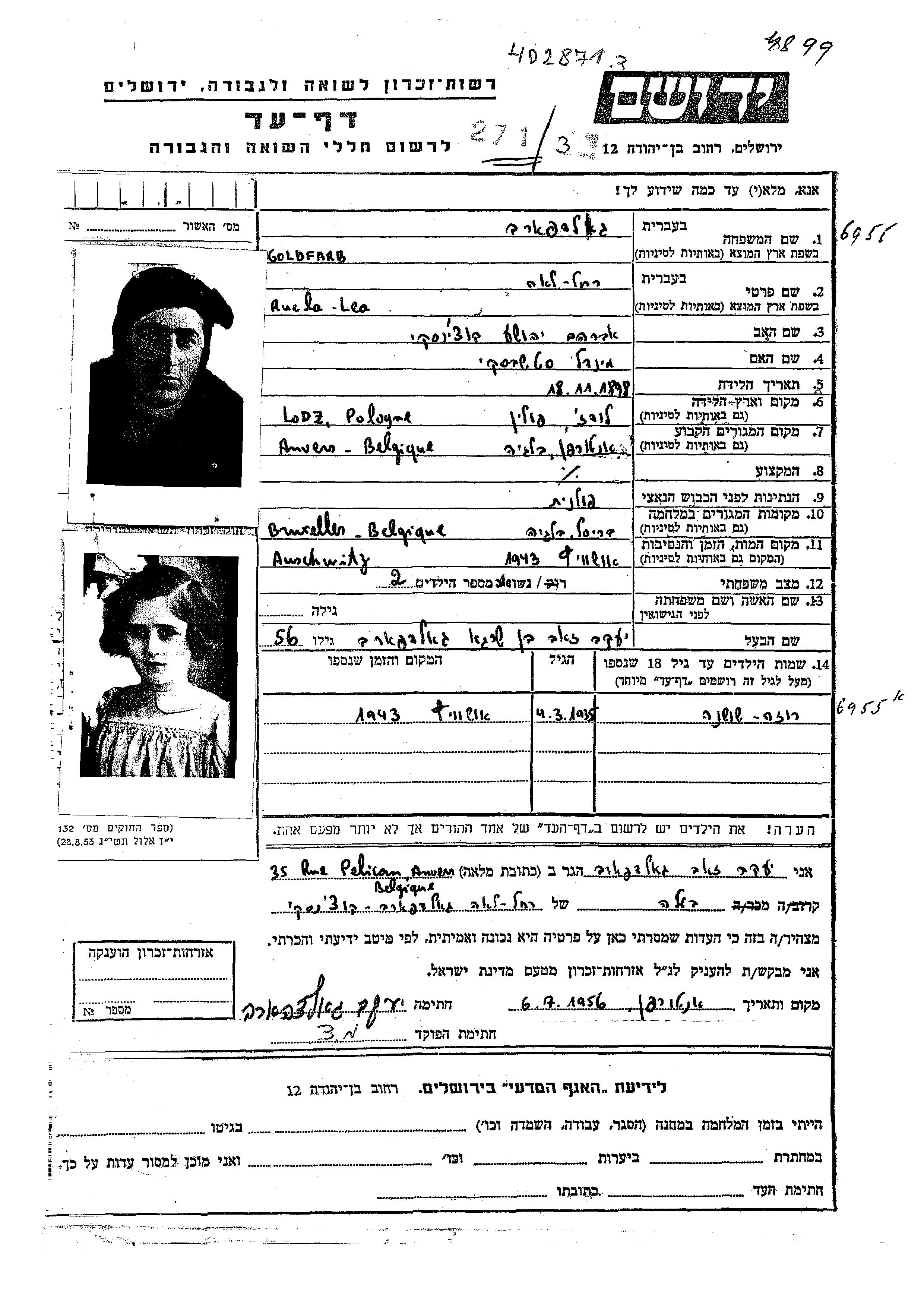 Goldfarb Roza Shoshana 04/03/1935 Antwerpen, Belgien Photos
