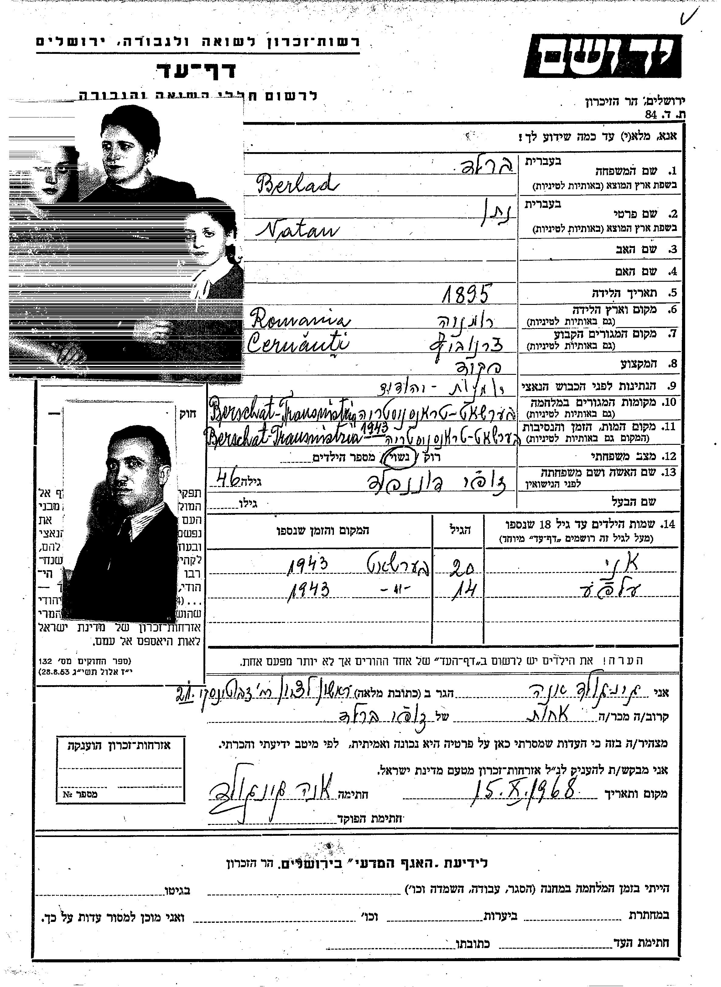 Ana Berlad. Vor dem Zweiten Weltkrieg lebte sie in Cernauti, Rumänien.