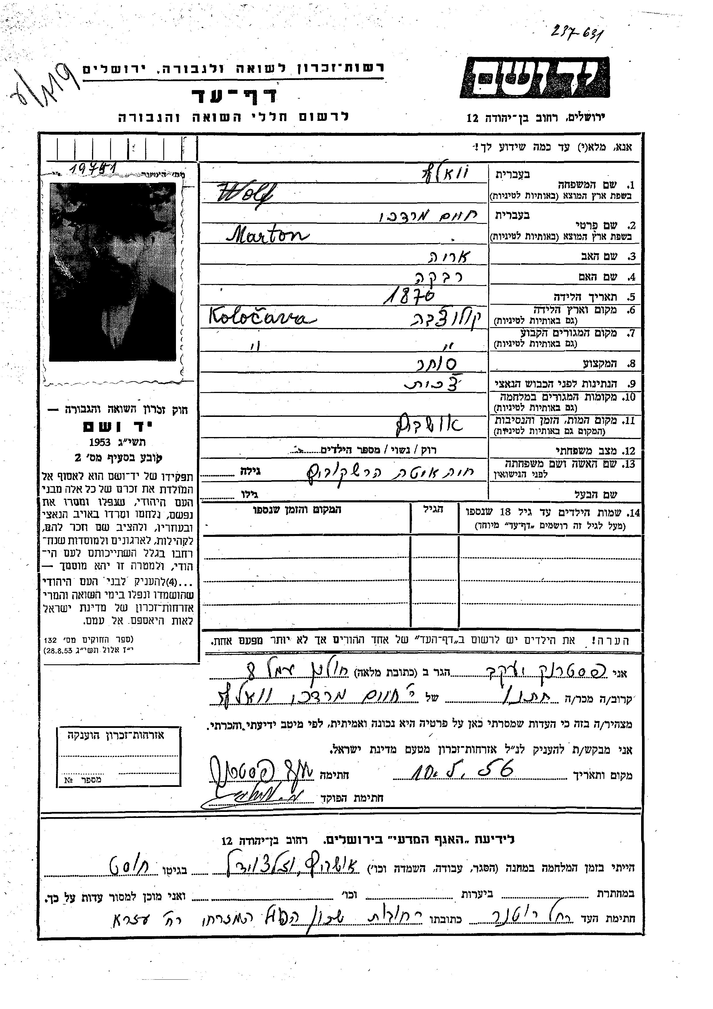 Khaim Mordekhai Marton wurde in der Schoah ermordet. Todesort: Oświęcim, Polen.