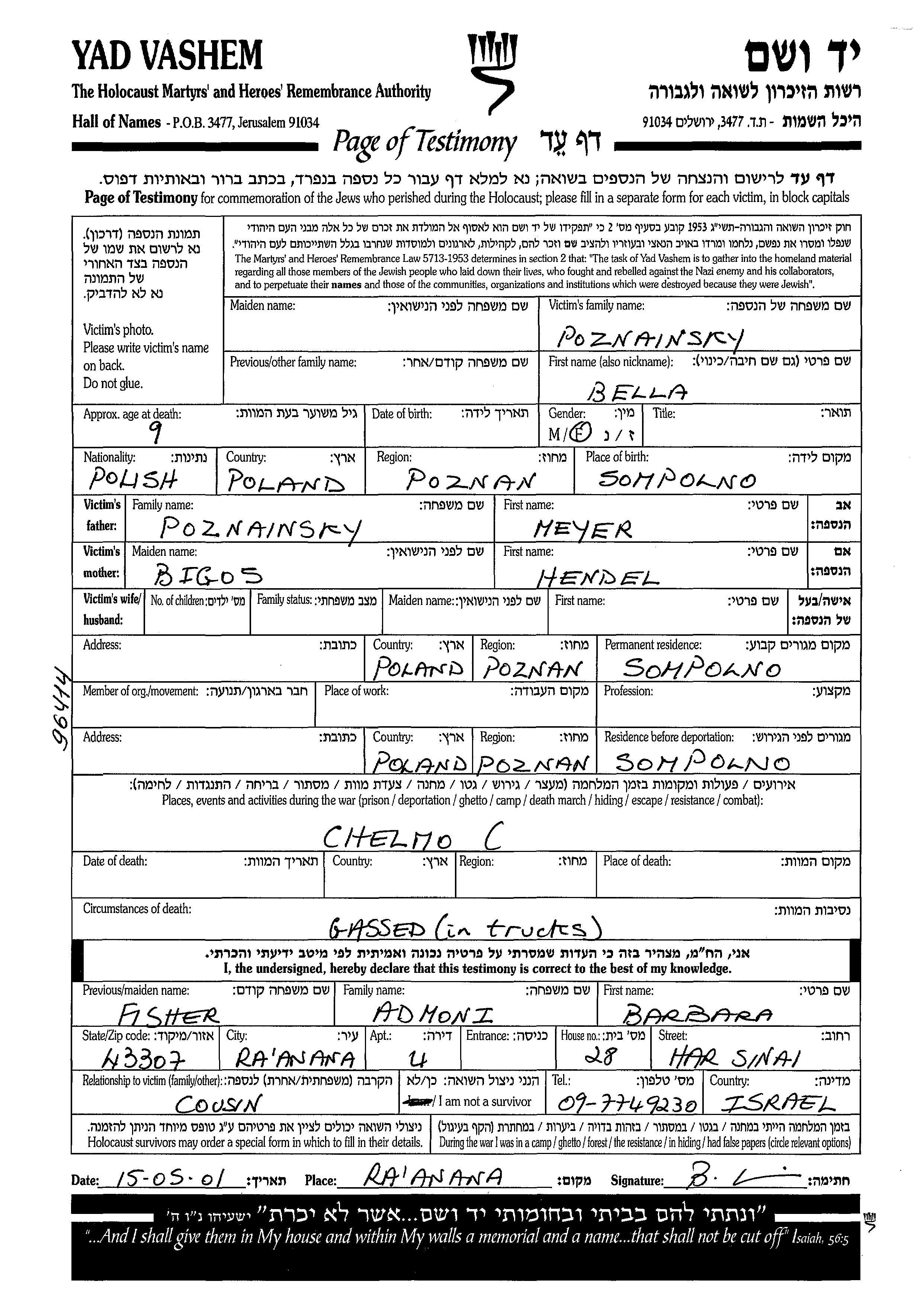Bela Poznanski. Vor dem Zweiten Weltkrieg er/sie in Sompolno, Polen.