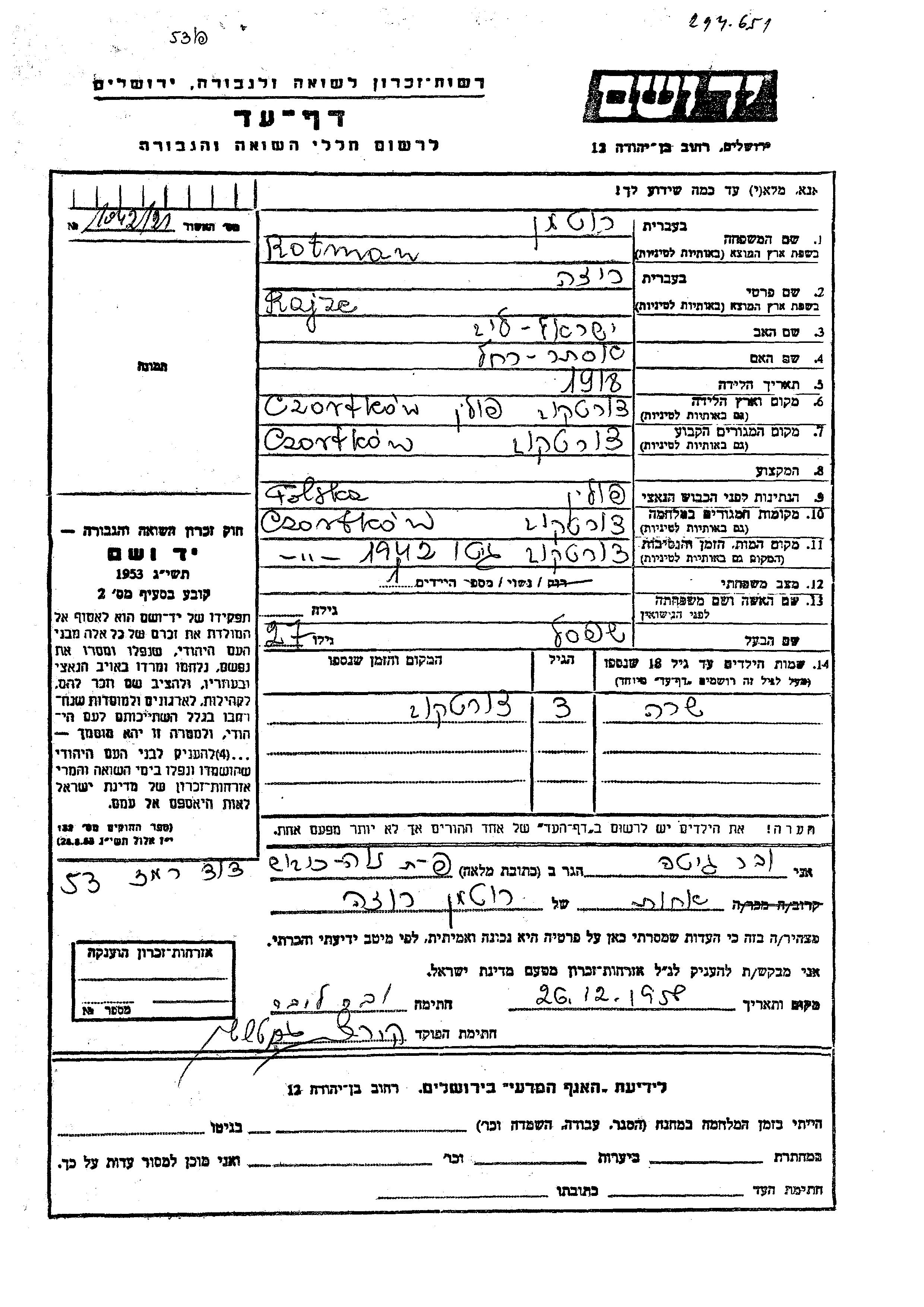 | Rotman | Sara | Czortkow, Polen | Gedenkblatt | |