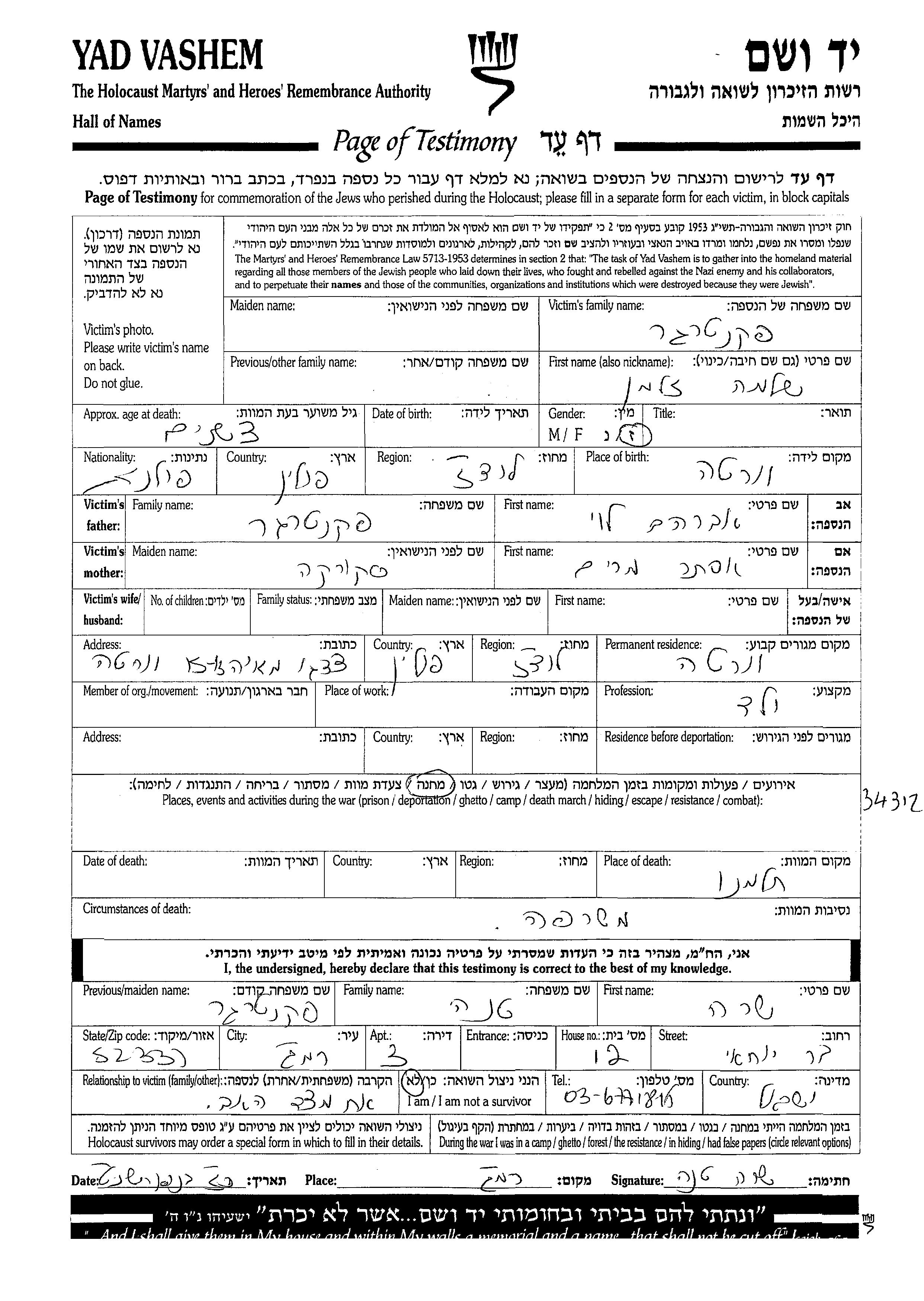 Shlomo Zalman Pakentreger wurde in Warta, Polen geboren. Vor dem Zweiten Weltkrieg lebte er in Warta, Polen.