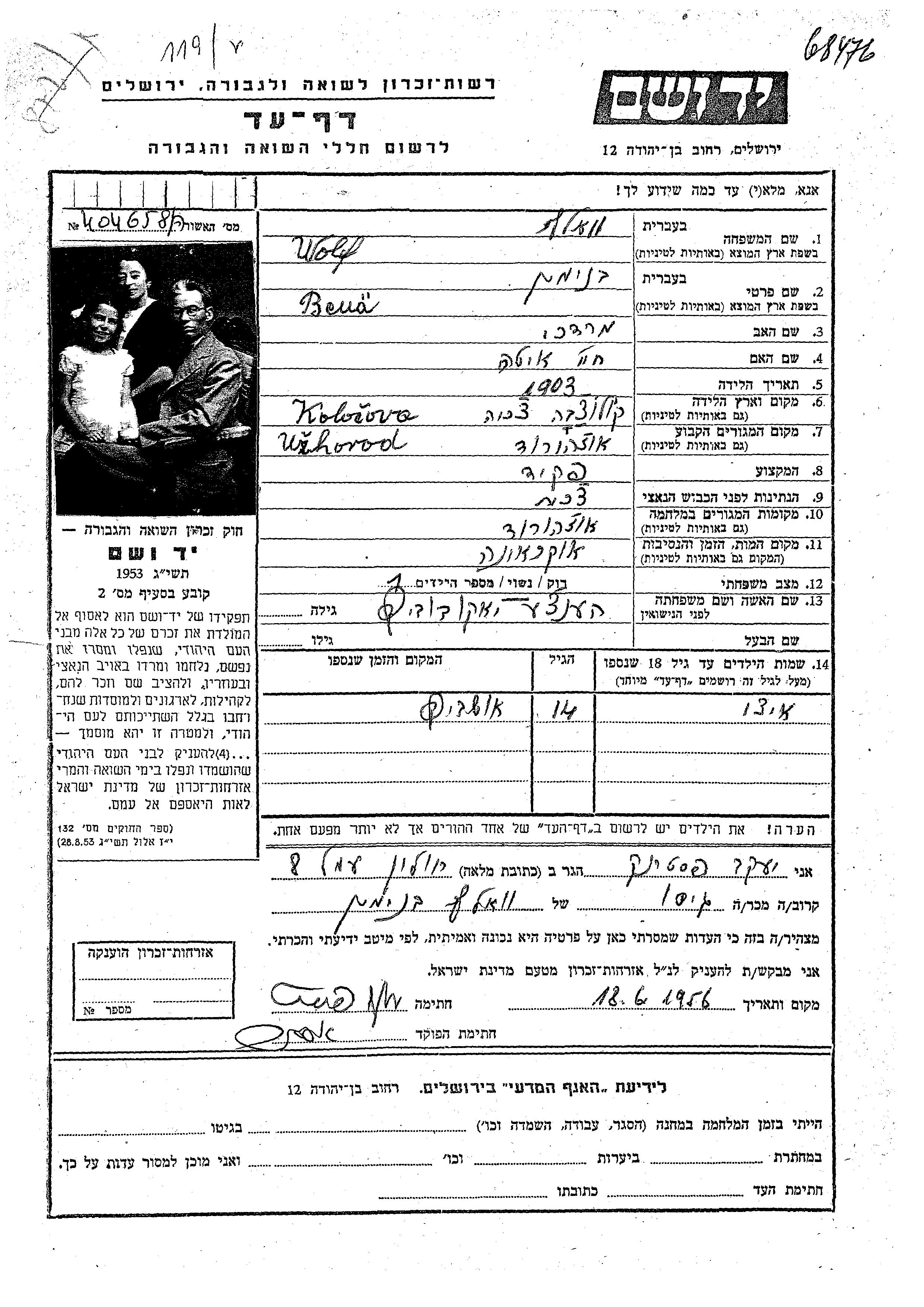 Yitzkhak Wolf. Vor dem Zweiten Weltkrieg er/sie in Uzhorod, Tschechoslowakei.