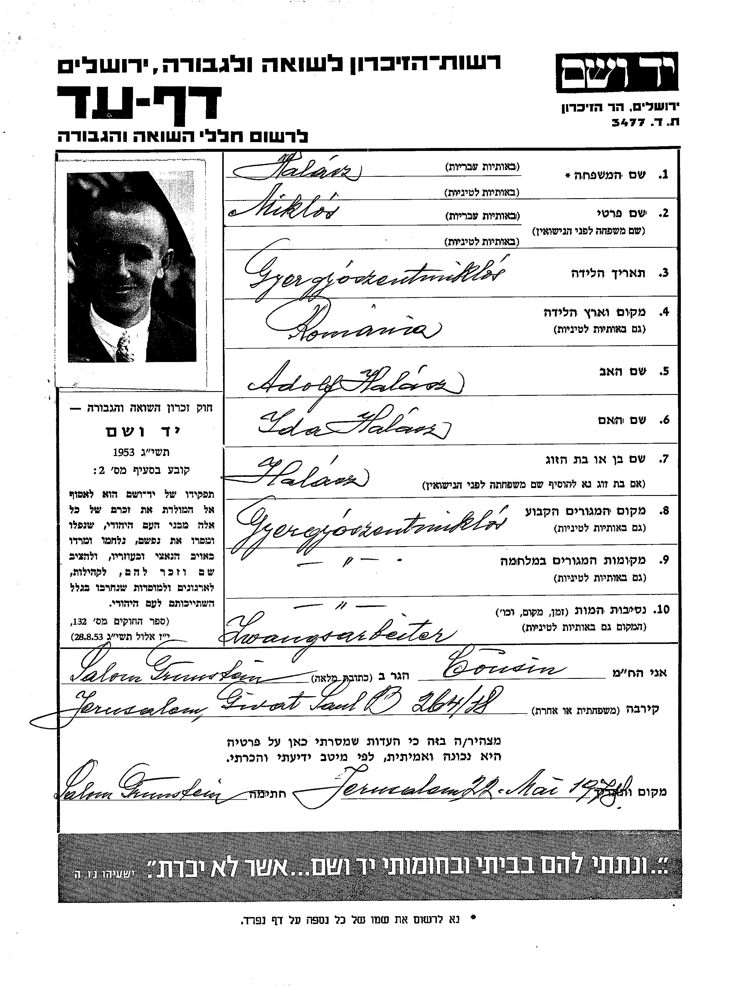 Miklos wurde in der Schoah ermordet. Todesort: Gheorgheni, Rumänien.
