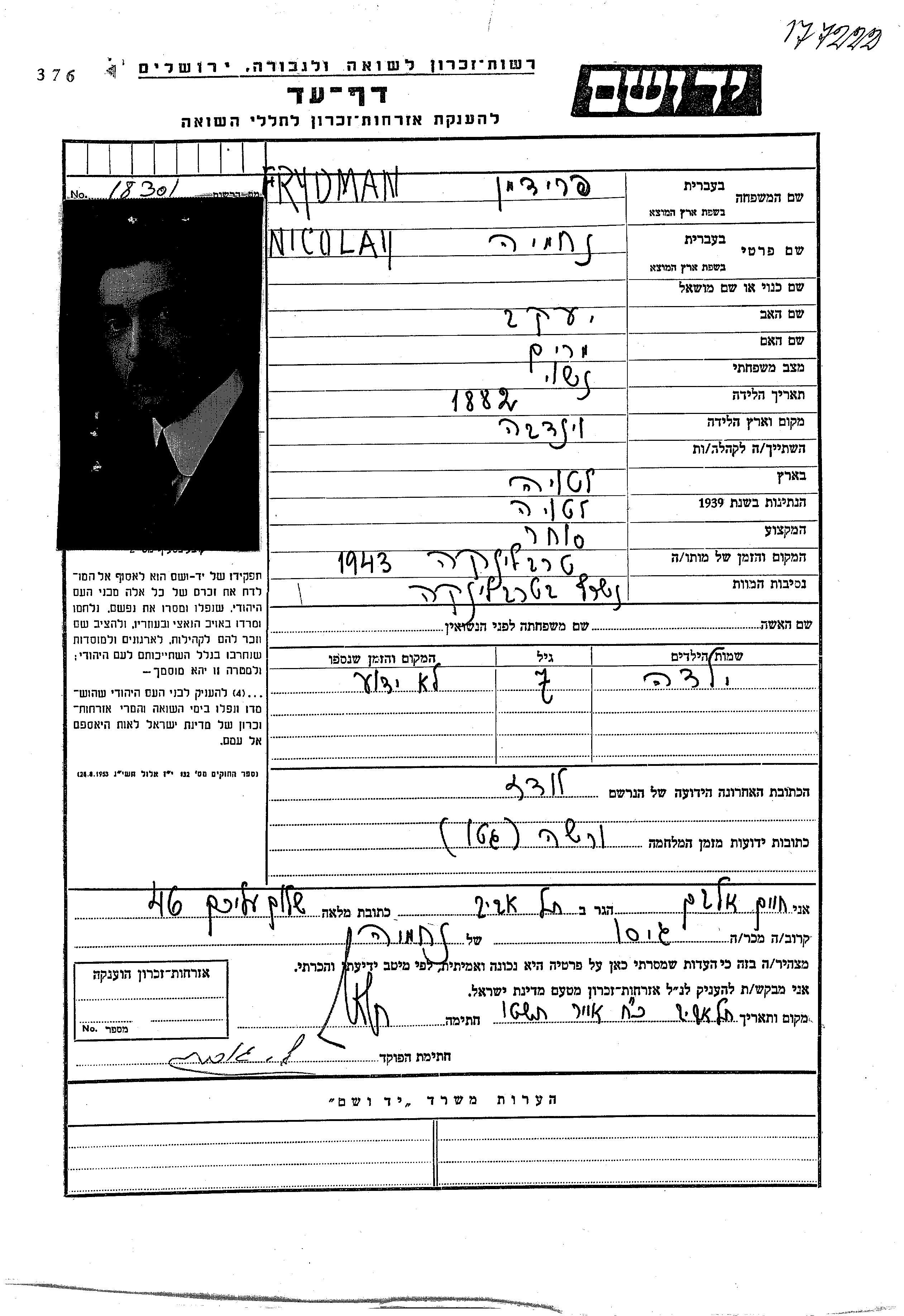 Nicolay Nekhemia wurde in der Schoah ermordet. Todesort: Treblinka, Polen im Jahr 1943.
