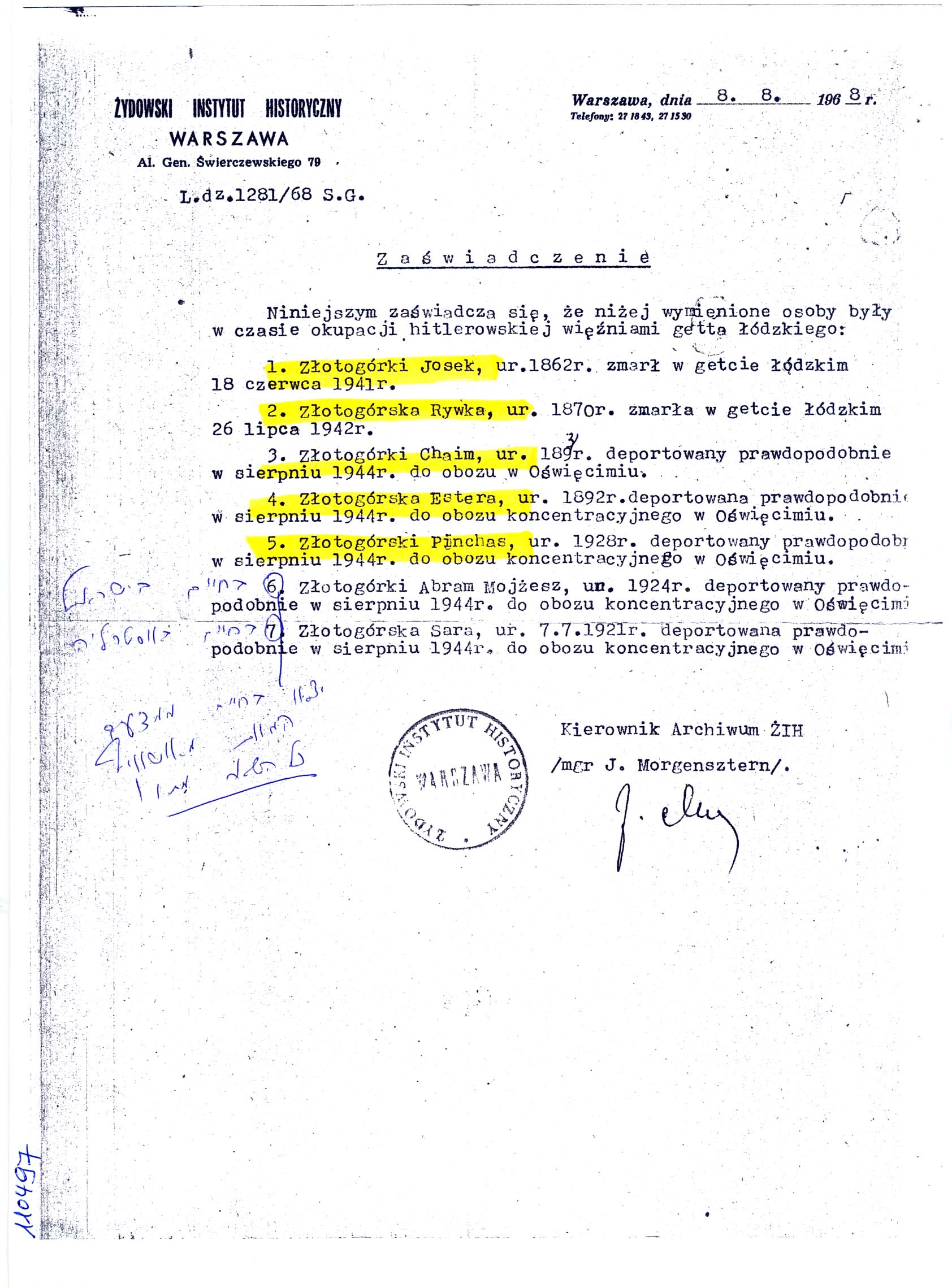 Suche nach einem Todesjahr im Zeitraum der Holocaust: 1933 bis 1945. Bitte wählen Sie 'Exakt' im Auswahlmenü, um nur nach einem einzelnen Jahr zu suchen, alternativ können Sie die flexibleren Optionen '+/- 2 Jahre' oder '+/- 5 Jahre' wählen.