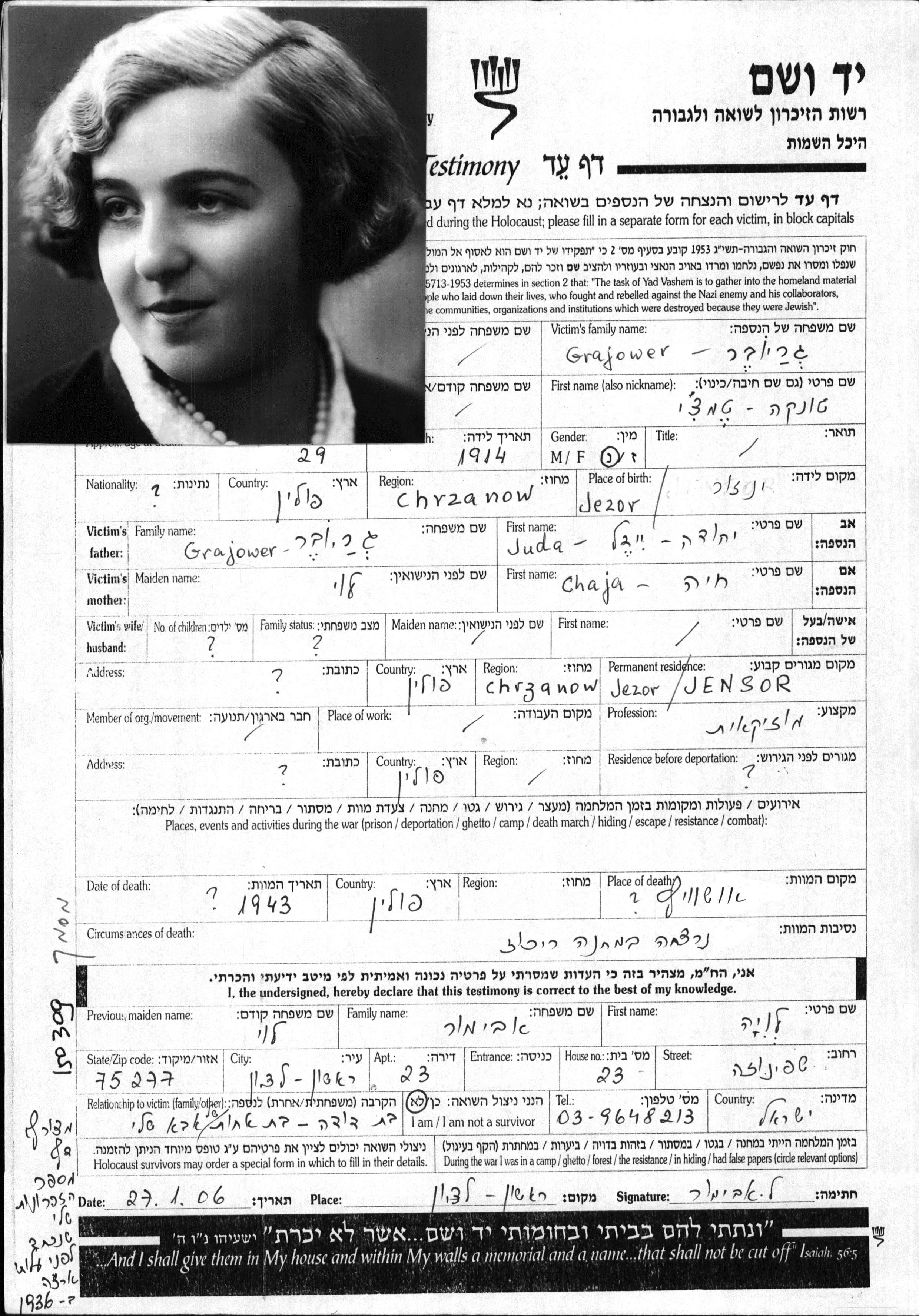 Tonka Temcha Grajower wurde im Jahr 1914 in Jezor, Polen geboren. Sie war Musiker/-in. Vor dem Zweiten Weltkrieg lebte sie in Jezor, Polen.